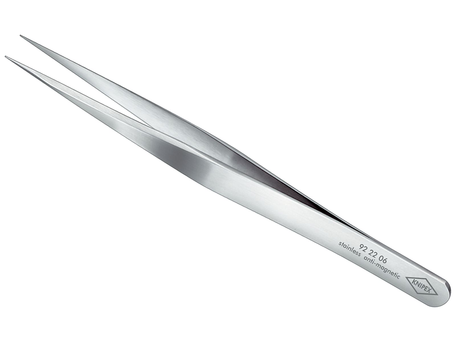 Universalpincet til fine montagearbejder. Lige form med glatte gribeflader og særligt smalle spidser. Fremstillet af ekstremt hårdt rustfrit stål med meget god korrosionsbestandighed i forskellige atmosfæriske miljøer og mange ætsende materialer.