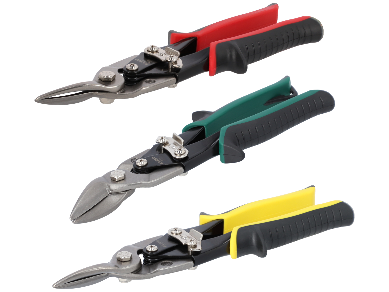 Pladesaksesæt med 3 stk. til hhv. lige-, højre- og venstreklip.