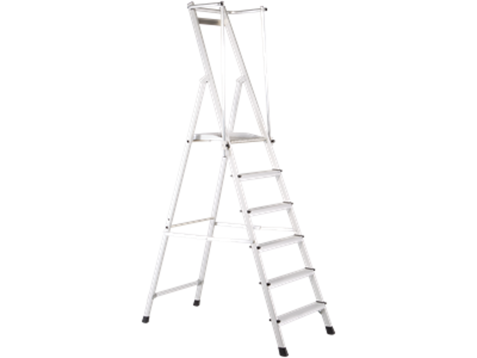 Ultralet platformsstige: Let og robust takket være de foldbare håndlister og komfortabel på grund af den store platform. Ekstra stor arbejdsplatform (400 × 400 mm). 3-sidet gelænder for maksimal arbejdssikkerhed. Gelænderhøjde 1.000 mm. Sammenfoldeligt gelænder, som er pladsbesparende under transport. Stå komfortabelt, sikkert og uden at blive træt på de 80 mm dybe rillede trin.