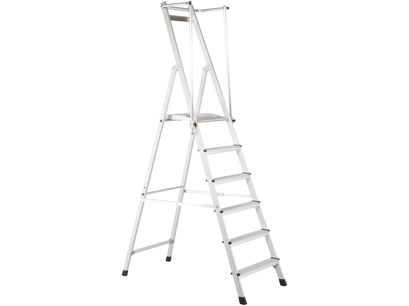 • Ultralet platformsstige: Let og robust takket være de foldbare håndlister og komfortabel på grund af den store platform. Ekstra stor arbejdsplatform (400 × 400 mm). 3-sidet gelænder for maksimal arbejdssikkerhed. Gelænderhøjde 1.000 mm. Sammenfoldeligt gelænder, som er pladsbesparende under transport. Stå komfortabelt, sikkert og uden at blive træt på de 80 mm dybe rillede trin.