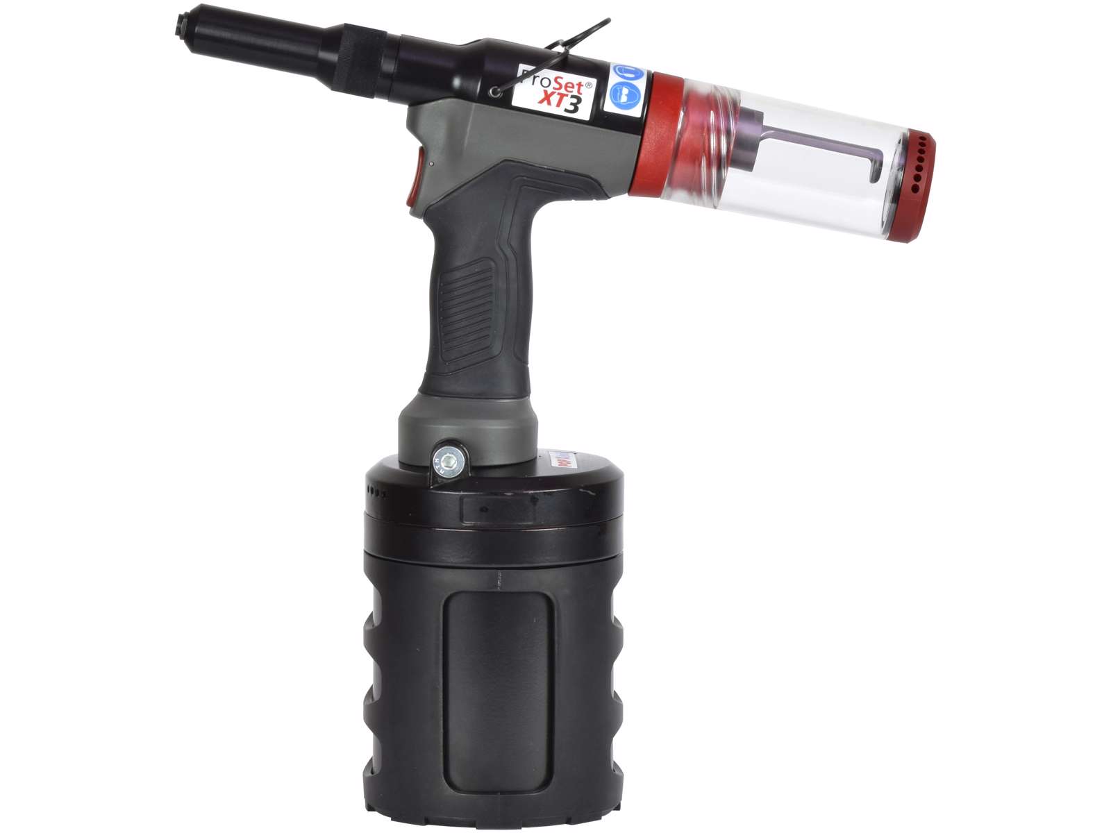• ProSet XT til isætning af blindnitter, er et kompakt, letvægts pneumatisk værktøj med ergonomisk design der sikrer maksimal brugerkomfort og effektivitet. Nittepistol med stor styrke ift. sin lave vægt. Kræver ingen værktøj til vedligeholdelse og rengøring. Hurtigt afmontering af næsehuset og kæber for nem vedligeholdelse og service Med 90° svirvelkobling der kan flyttes både højre/venstre for større fleksibilitet. Stiftopsamler så der ikke flyder løse stifter på arbejdsemnet. Mulighed for at dreje returluft væk fra brugeren. Fås i flere modeller.