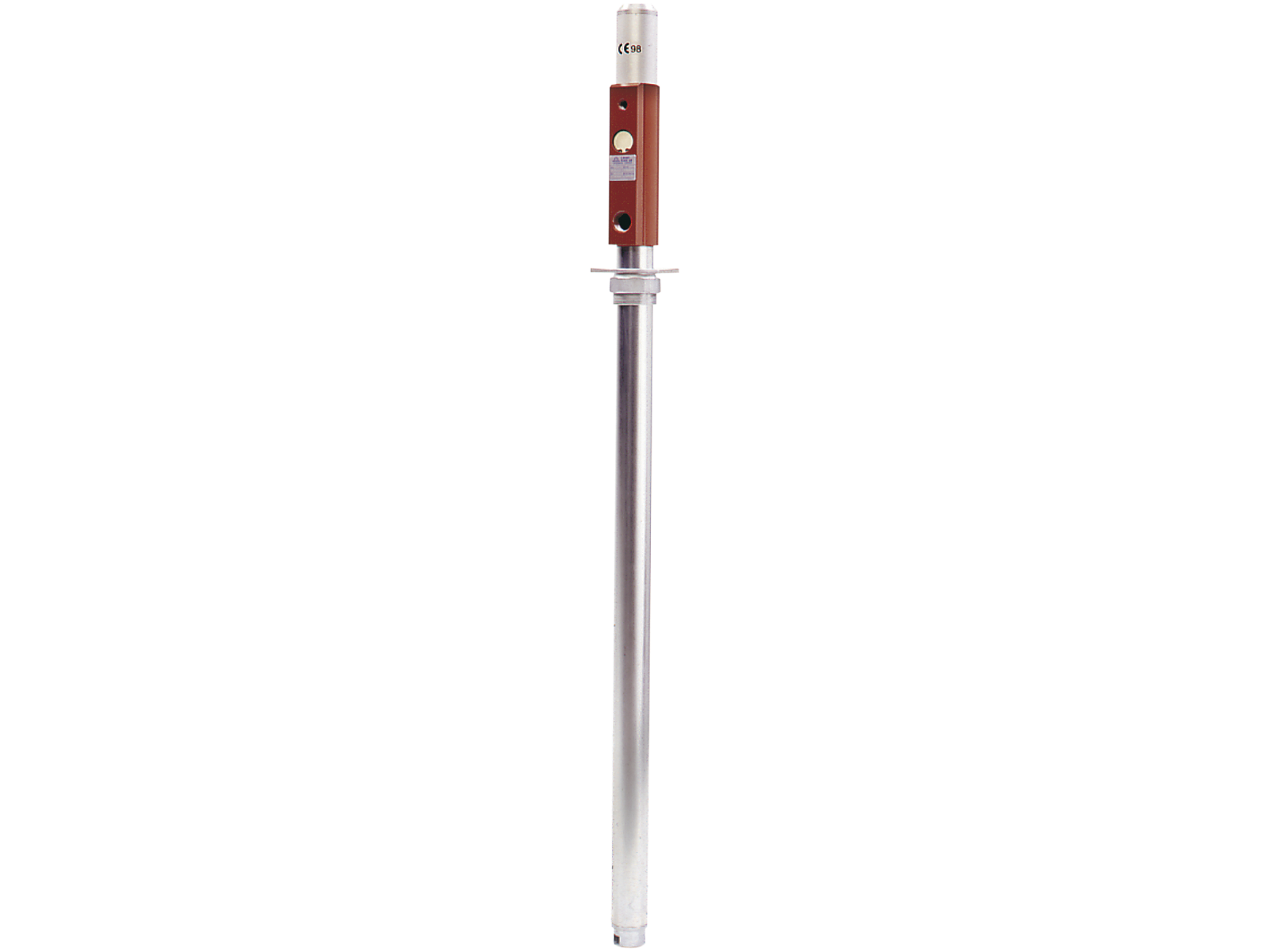 Eurolube trykluftdreven oliepumpe 1:1 for smøreolie op til SAE 90 i rørsystem. For 208 ltr. tromler. Lufttilslutning 1/4" R. Olieudløb 3/4" R. Med 2" fadforskruning. Maks. 10 bar. Arbejdstryk 8 bar. 40 ltr./min (ø50 × 930 mm). Kapaciteten er baseret på fri gennemstrømning.