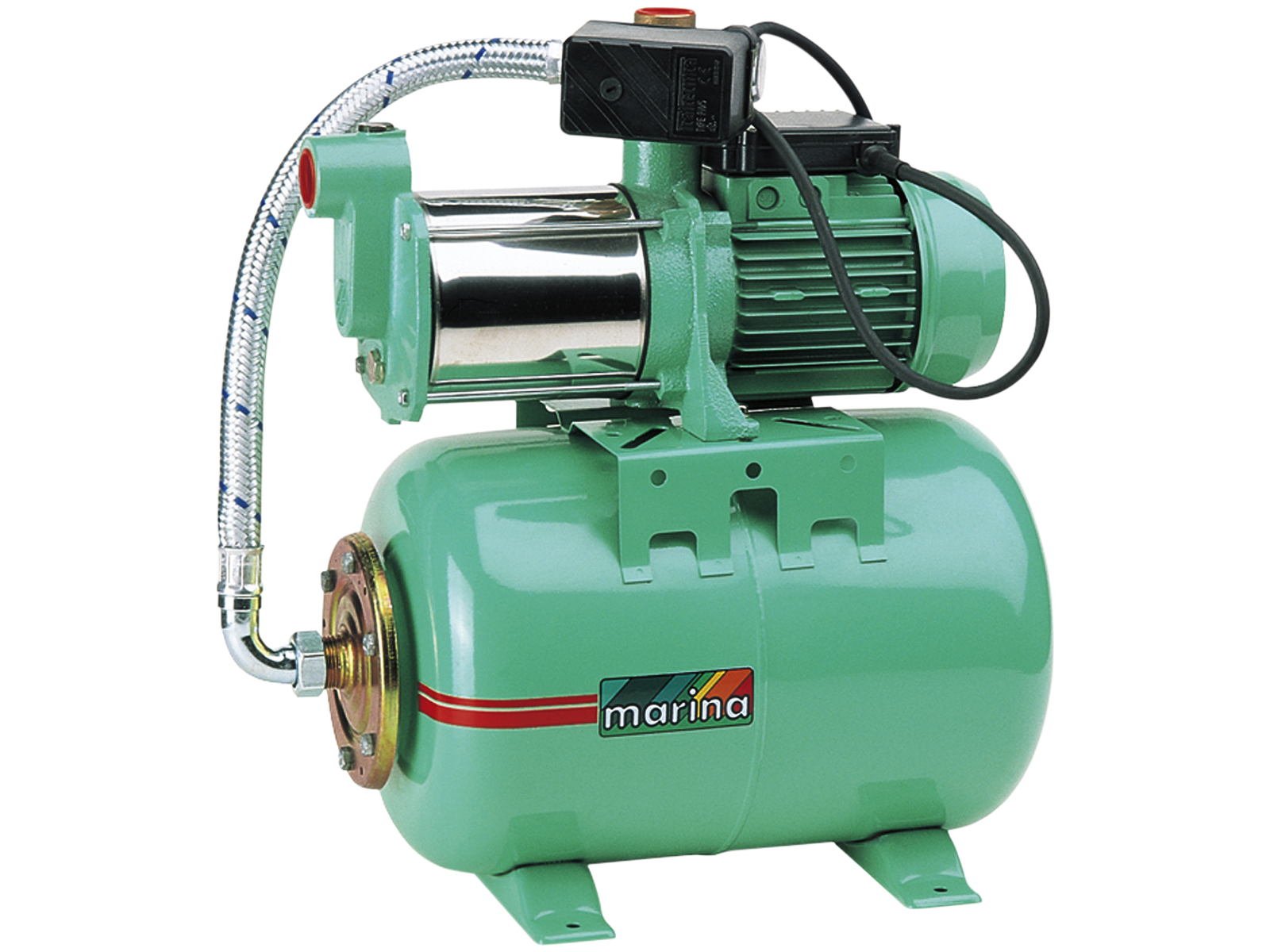 Husvandværk med selvansugende flertrins pumpe. Kan suge op fra 8 mtr. dybde. Den er meget lydløs og pålidelig. Specielt anvendelig til at øge trykket på et vandsystem, pumpe vand fra f.eks. en brønd, sø eller beholder, og levere vand til husholdningen. Fuldautomatisk drift. Det vil sige, at pumpen starter automatisk, når du åbner for vandet, og stopper når du slukker.