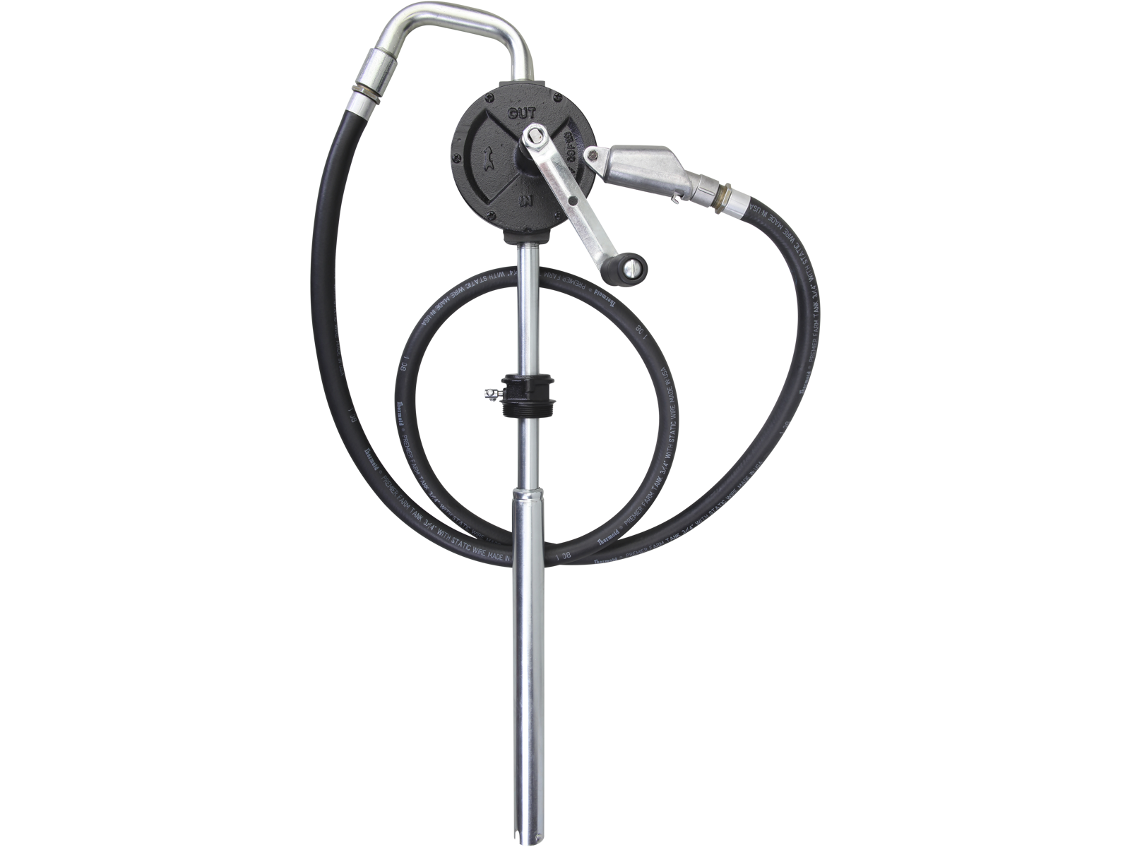 Brændstofpumpe m/ 2 mtr. antistatisk slange. Pumpehuset er i støbejern og indvendige dele af grafit. Udløbsstudsen er forsynet med udlufter for at forebygge hævertfunktion, fadforskruningen er forsynet med pakning for at minimere fordampning af væske. Teleskoprøret er forsynet med bundventil 300 ml/per rotation ~ 38 ltr./min. Tilslutning 2"R fadforskruning f/ 50-200 ltr. Velegnet til: benzin, olie, petroleumsprodukter, dieselolie. Må ikke bruges til vandbaserede og alkaliske væsker.