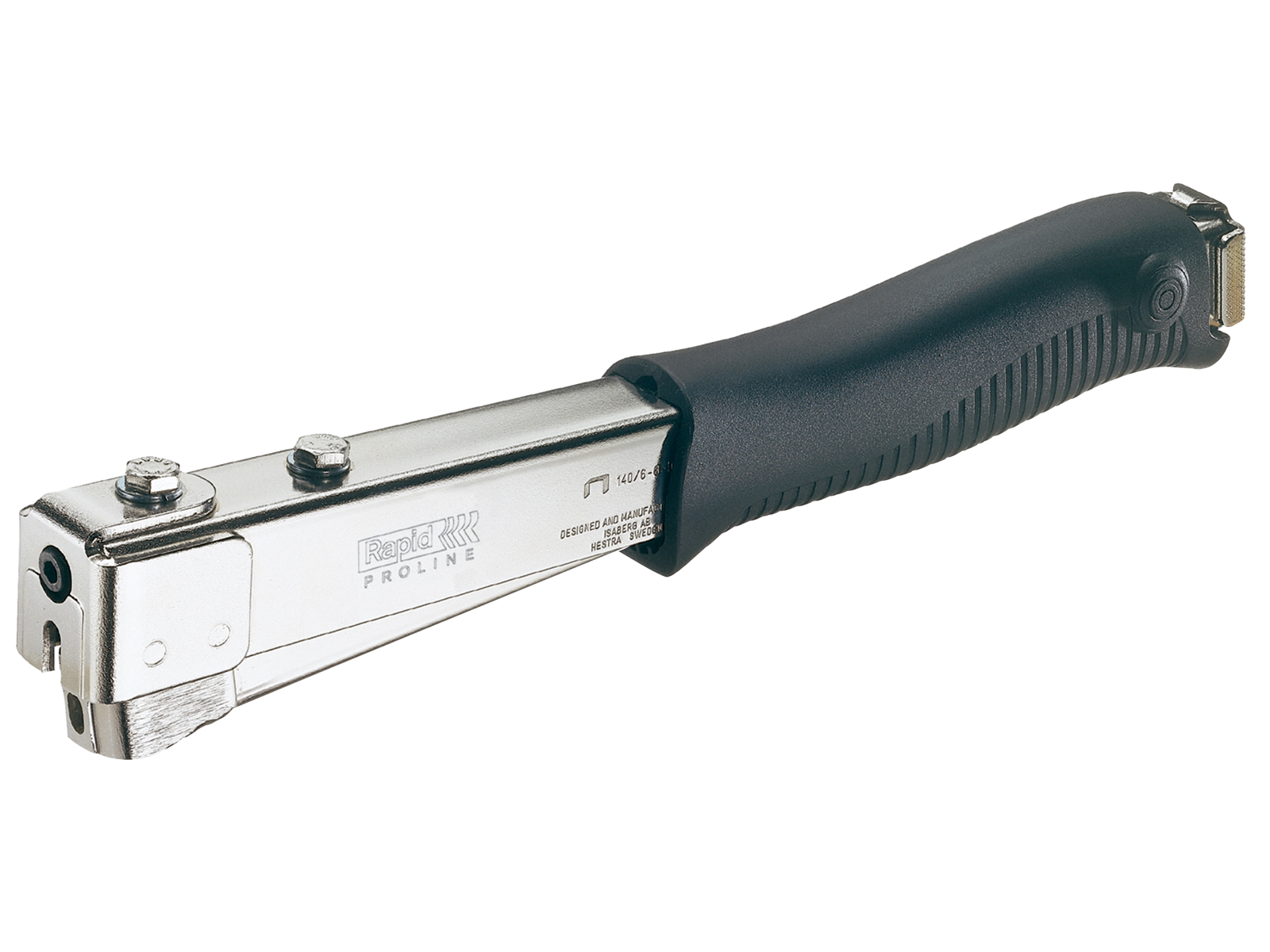 Kraftfuld, nøjagtig hæftehammer til krævende professionel brug. Den er ideel til hyppige opgaver, som f.eks. fastgøring af lofter og isolationsmateriale, plastikindpakning og fugtbeskyttelse. Det ergonomiske, skridsikre enhåndsgreb gør pistolen nemmere at håndtere og arbejdet mindre opslidende, mens den robuste stålkonstruktion sikrer pålidelighed og forlænger holdbarheden. Til bredtrådshæfteklammer nr. 140, 6-10 mm. Fremstillet i Sverige.