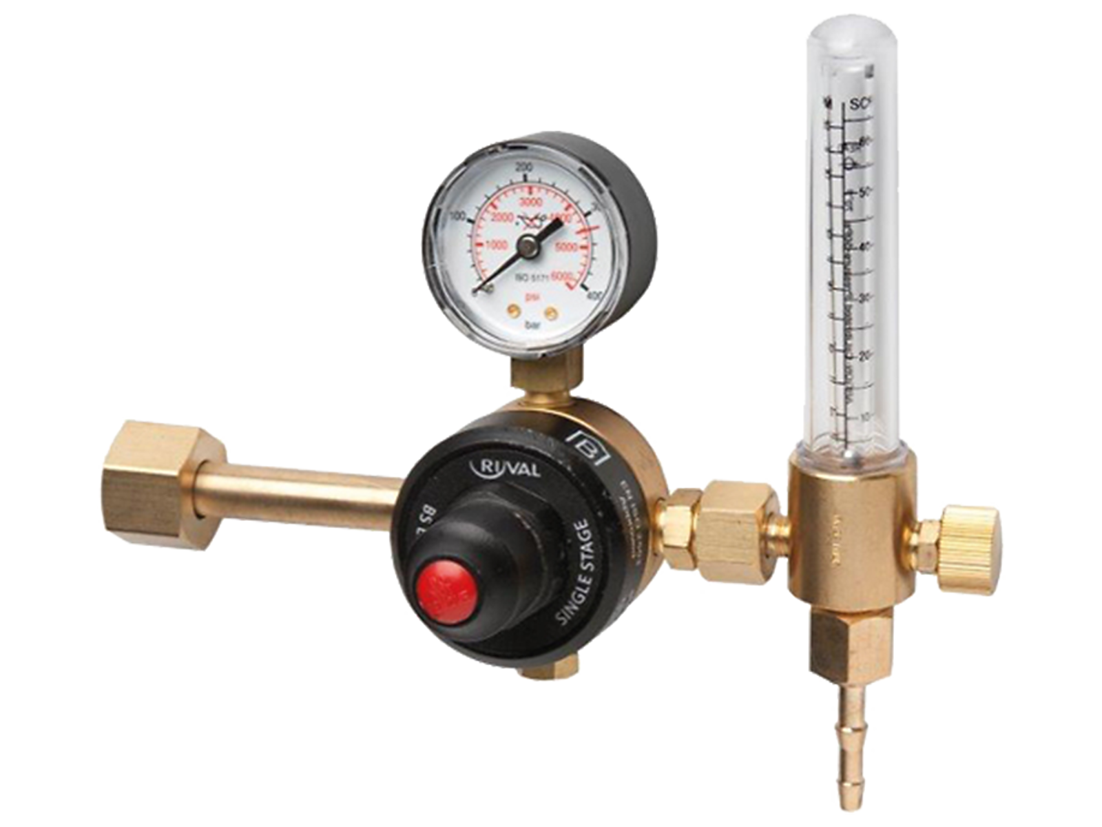 Ryval flowregulator til argon og argonblandinger til svejsning og baggas. Gasflow 0-30 ltr./min. Findes i to varianter.