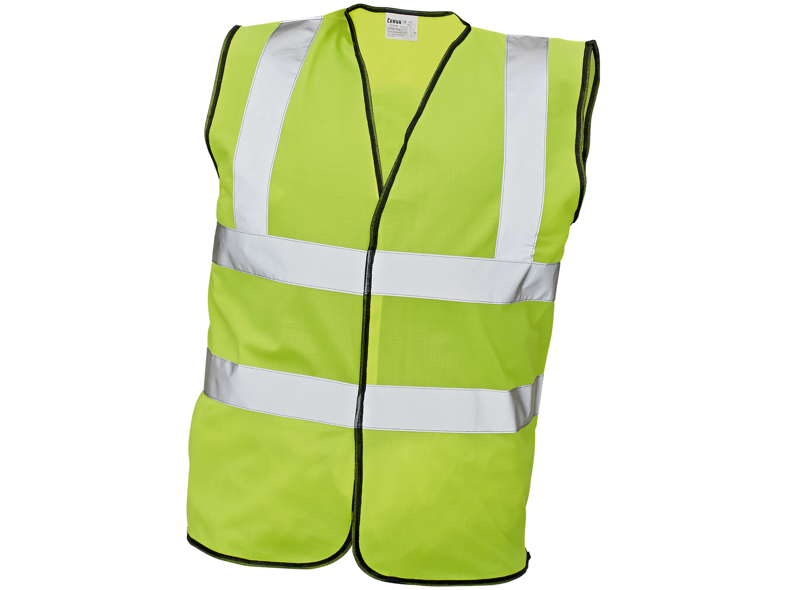 Trafik-/advarselsvest i 100% polyester med 3×5 cm brede refleksstriber. Design med velcrolukning. Kan vaskes maks. 25 gange ved 30°C. Godkendelse: EN ISO 20471:2013, klasse 2 for fluorescerende og reflekterende materiale. Fås i flere størrelser.