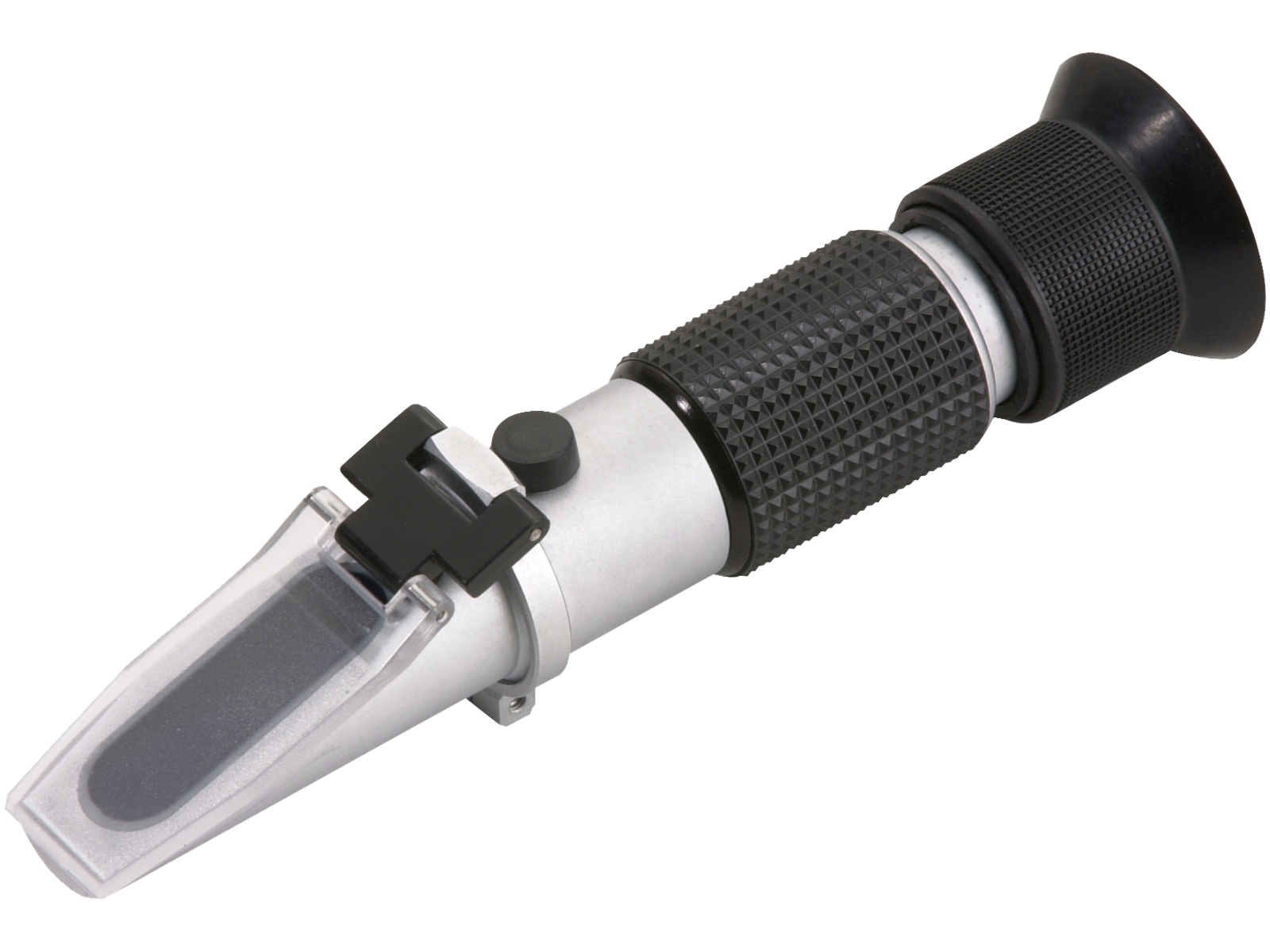 Refraktometer. Fastsætteråhurtigt og præciståfrysepunkt på propylen- og ethylen glycol-baserede frostvæsker. Kan ligeledes fastsætte batteriets syrekoncentration/ladetilstand. Udstyret med fokuserende okular som viser en skarp og letaflæselig skala. Specifikationsområde: -45° til 0° propylene glycol og -50° til 0° ethylene glycol.