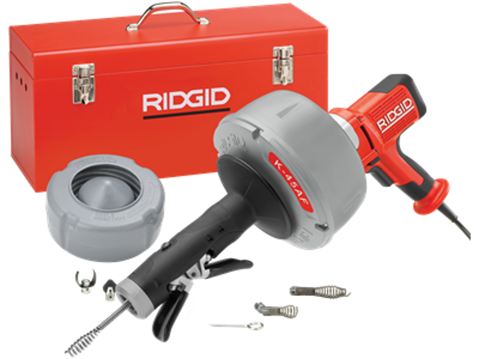 Til 3/4" (20 mm) til 2.1/2" (75 mm) afløbsledninger. Fremragende til rengøring af små ledninger. Åbner tilstoppede toiletter, vaske, urinaler og kar-/bruserafløb. 1/4" (6 mm) spiraler bedst til 3/4" (20 mm) til 1.1/2" (40 mm) ledninger. 5/16" (8 mm) spiraler bedst til 3/4" (20 mm) til 1.1/2" (40 mm) ledninger. 3/8" (10 mm) spiraler bedst til 1.1/4" (30 mm) til 2.1/2" (75 mm) ledninger. Avanceret to-vejs autofeed holder hænder og arbejdsområde rent, da den skyder spiralen frem og trækker den ind ved et tryk på en knap. Let, let anvendelig og ingen opstilling påkrævet. Strømforsyningsenhed med variabel hastighed drejer spiralen ved 0-600 o/min. Todelt beholder med drejelås med udskiftelig indertromle. Giver nem udskiftning af spiral, let at finde den rette spiral til opgaven. Indertromlen hindrer lækage af vand og reducerer kraftigt kabelvending inde i tromlen. Tromler bliver ikke bulede eller ruster. Tromlekapacitet: 50 fod (15 mtr) 5/16" (8 mm) eller 35 fod (11 mtr) 3/8" (10 mm). Ridgi