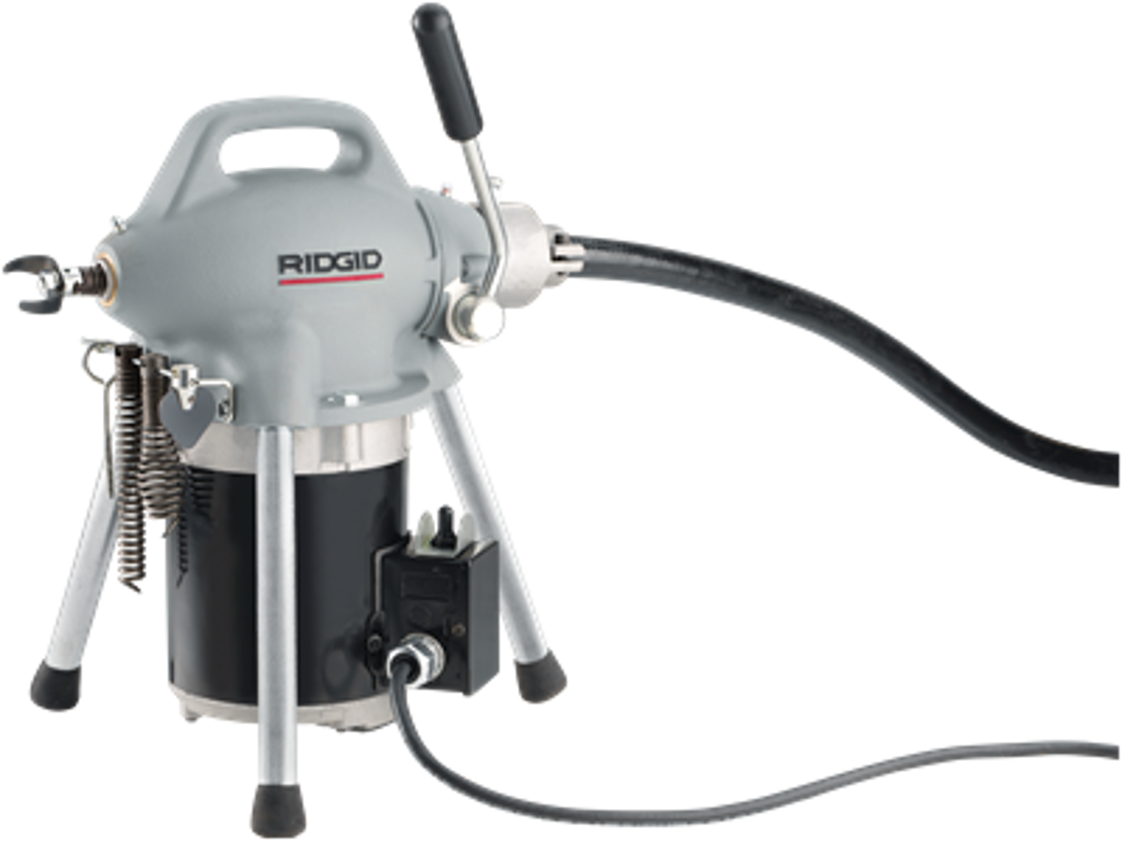 Til 3/4" (20 mm) til 4" (110 mm) afløbsledninger. Kompakt, alsidig maskine til fagmanden. Kan køre med tre forskellige spiralstørrelser: 5/16" (8 mm), 3/8" (10 mm) og 5/8" (16 mm). Den perfekte universelle vask-, brusebad- og gulvafløbsmaskine. Vejer mindre end 18 kg. Unik, let anvendelig, hurtigvirkende spiralkobling giver maksimal operatørstyring. Træk håndtaget ned for at rotere spiralen med 400 o/min. Slip håndtaget, og spiralen stopper øjeblikkeligt. Bruger sektioner af 5/8" (16 mm) spiral, rengør 1.1/4 " (32 mm) til 4" (110 mm) ledninger op til 100 fod (30 mtr). C-8 bedst til 1.1/4 " (32 mm) til 3" (75 mm) afløb. C-9 bedst til 2" (50 mm) til 4" (110 mm) afløb. Udstyret med en A-17 adapter, kører med op til 50 fod (15 mtr) 5/16" (8 mm) eller 35 fod (11 mtr), 3/8" (10 mm) fortsat spirallængde, 5/16" (8 mm) bedst til 3/4" (20 mm) til 1.1/2" (40 mm) ledninger, 3/8" (10 mm) bedst til 1.1/4" (32 mm) til 2" (50 mm) ledninger. Udstyret med 300 W motor. A-1 Ridgid afløbsrensningshandske o