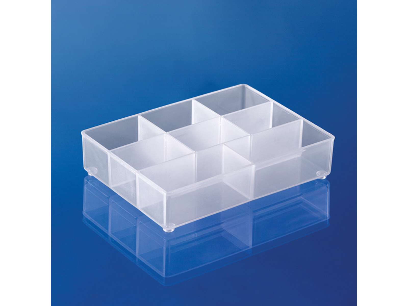 Indsats i halv højde med 8 rum. Kan bl.a. anvendes til inddeling af Pocketbox, Assorter, boxxser, CarryLite, Compact og skuffe 250-3.
