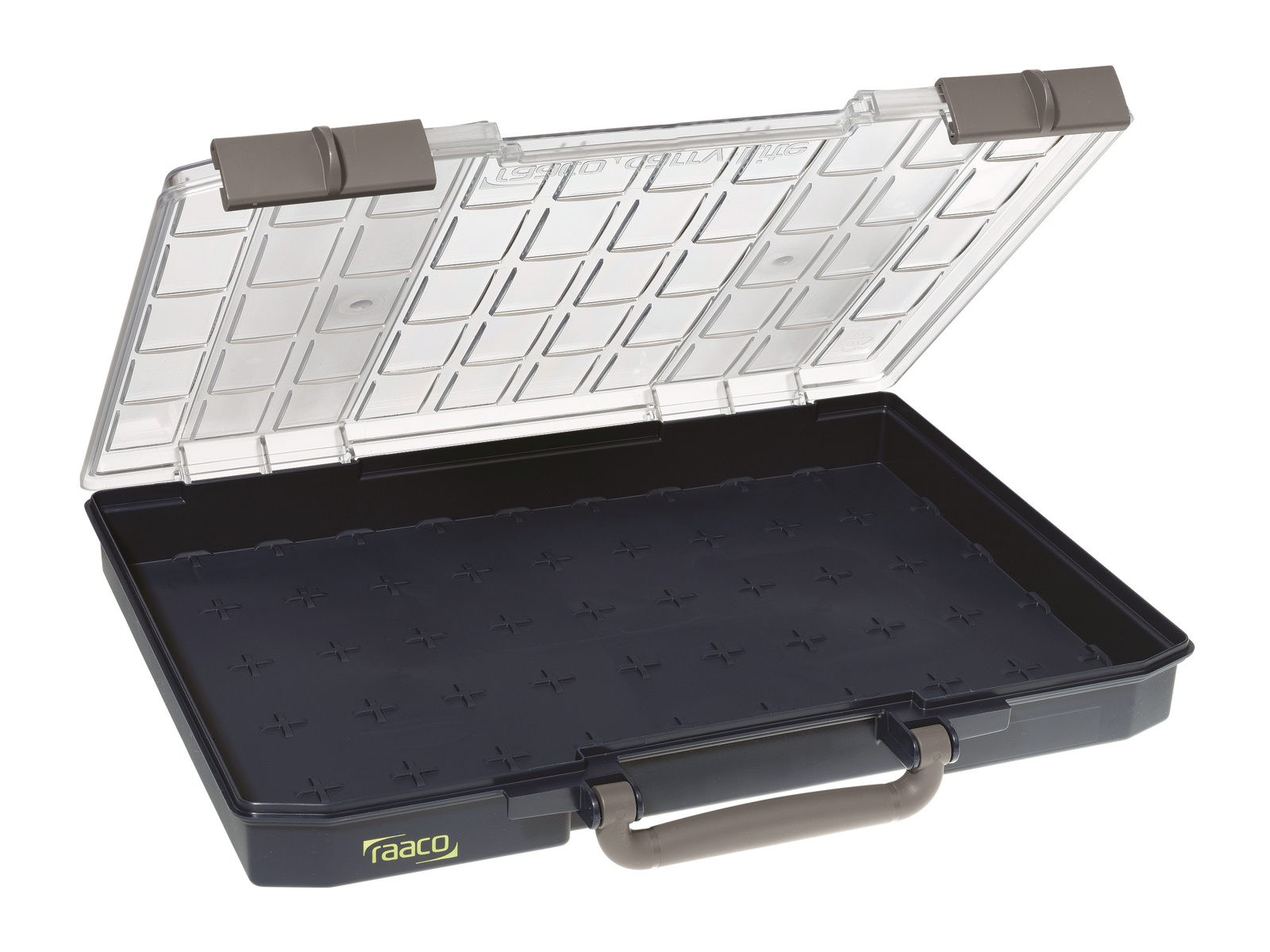 Sortimentsæske med skydelåse og håndtag. Kan inddeles i mindre rum ved hjælp af indsatse 55 eller skumindlæg - ekstra tilbehør. Fremstillet af polypropylen (PP) samt stærkt låg af polycarbonat (PC).