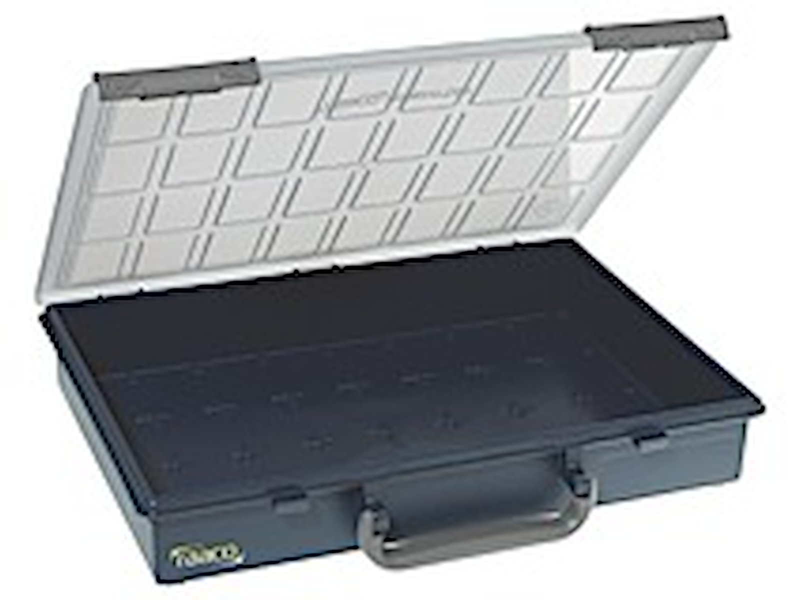 Sortimentsæske med skydelåse og håndtag. Kan inddeles i mindre rum ved hjælp af indsatse 55 - ekstra tilbehør.