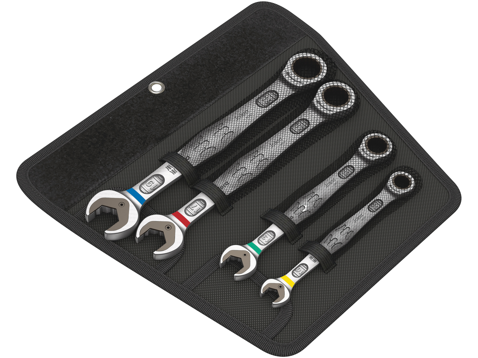 WERA Joker sæt med 4 dele, mørtikken tilføres helt uden hjælp. Holdet sørger for, at arbejdet kan klares hurtigere. Skruer uden vending. Lille returvinkel på kun 30°. Finfortandning med 80 tænder. Joker sæt i praktisk værktøjsetui.