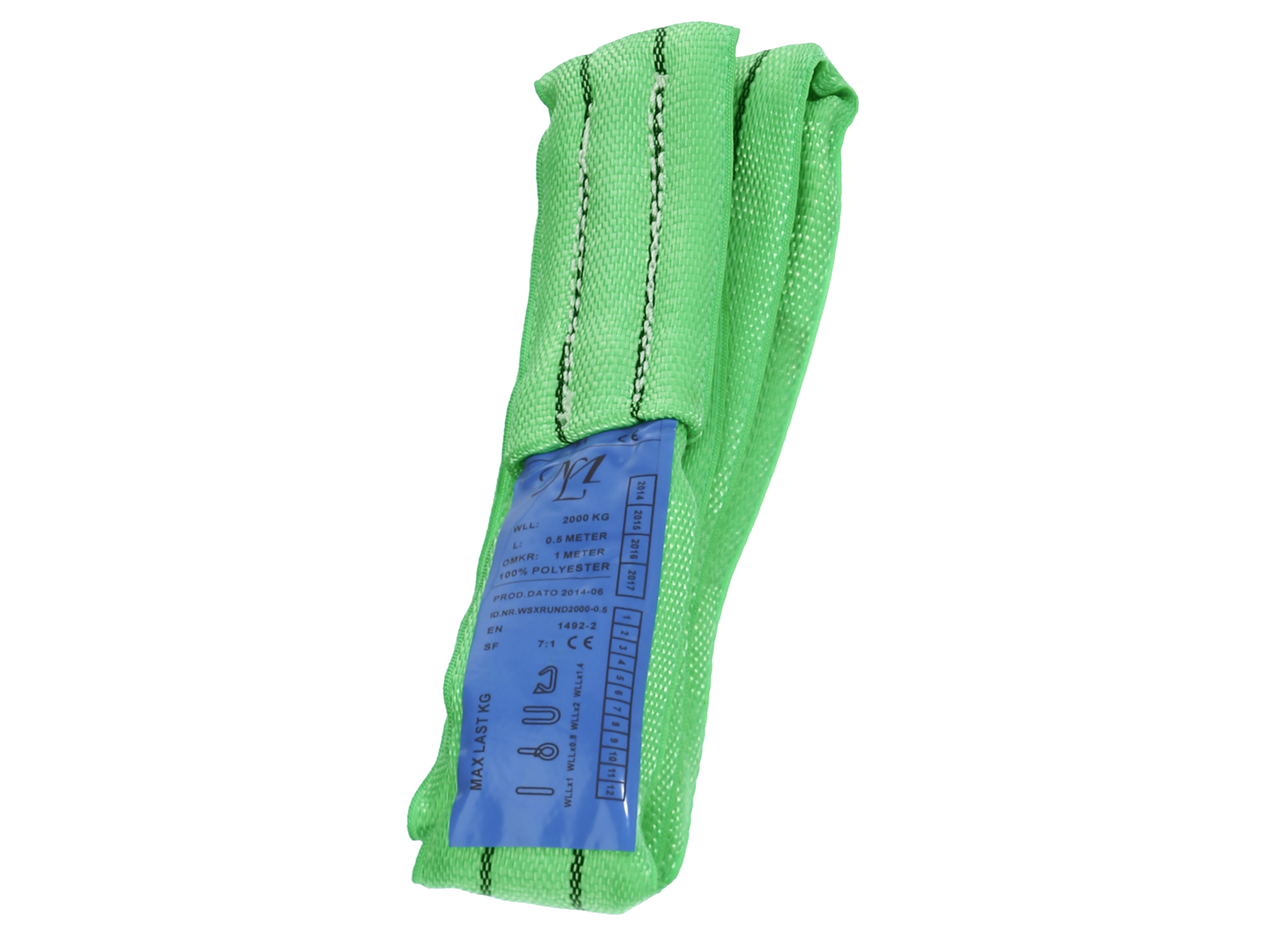 Dobbeltsyet polyester-rundsling til alle løfteopgaver. Fremstillet af kraftig polyester i dobbelt pose. EN 1492-2, sikkerhedsfaktor 7:1.