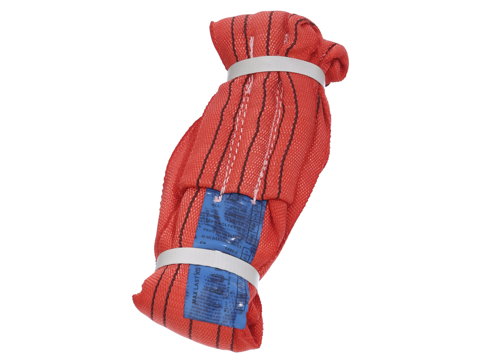 Dobbeltsyet polyester-rundsling til alle løfteopgaver. Fremstillet af kraftig polyester i dobbelt pose. EN 1492-2, sikkerhedsfaktor 7:1.