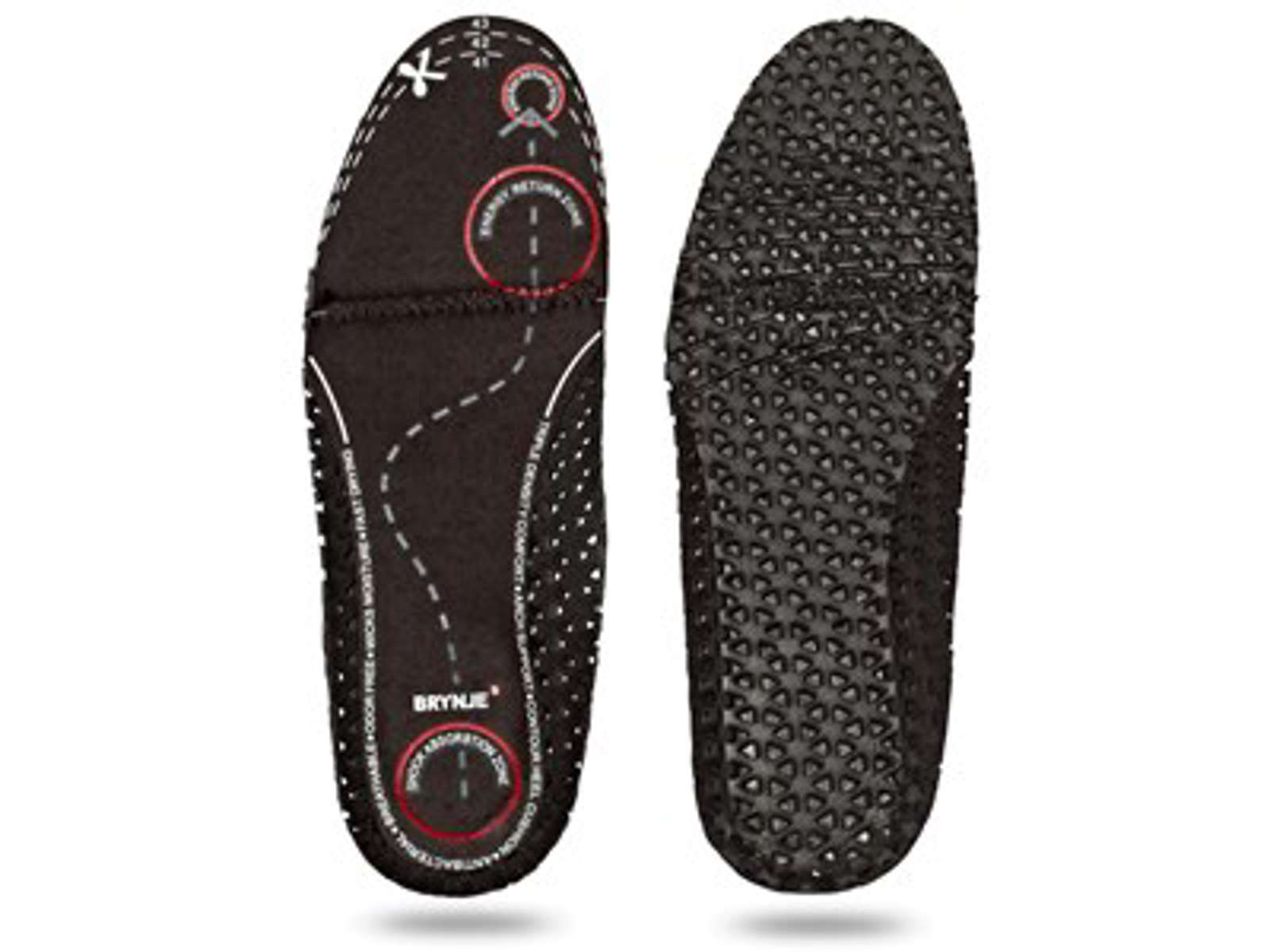 Antistatisk, blød og stødabsorberende indlægssål. Sålen er konstrueret for optimal komfort og opbygget af en blød og svedtransporterende EVA sål, der former sig efter foden og giver let støtte omkring svang og hæl. Herefter er der lagt en memory-foam på hele trædefladen og ekstra stødabsorberende PU skum i både hæl og forfod. Kan klippes så den passer til skoen. Anvend klippelinjerne eller brug den eksisterende sål som skabelon for optimal pasform.