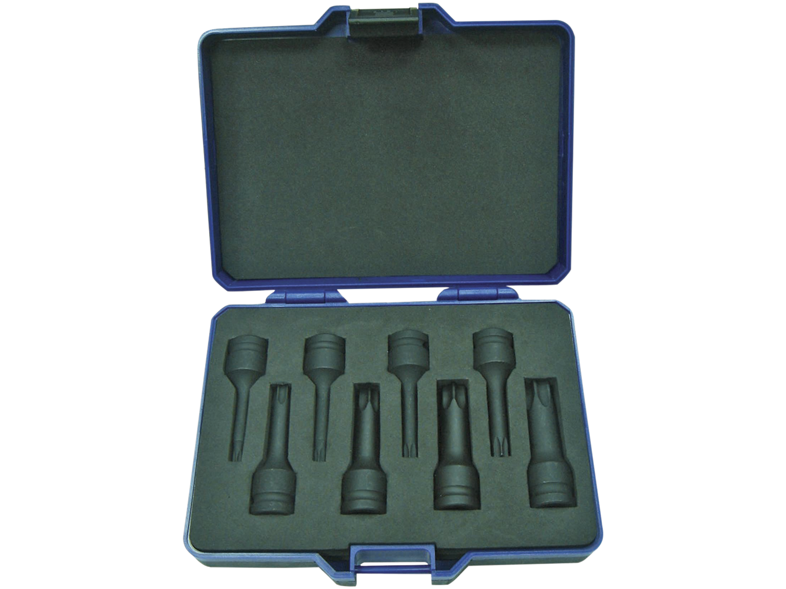 Kraftstifttopsæt med 8 dele. 1/2" Torx-kraftstifttoppe: TX30 - TX40 - TX45 - TX50 - TX55 - TX60 - TX70 - TX80. Leveres i opbevaringskuffert.