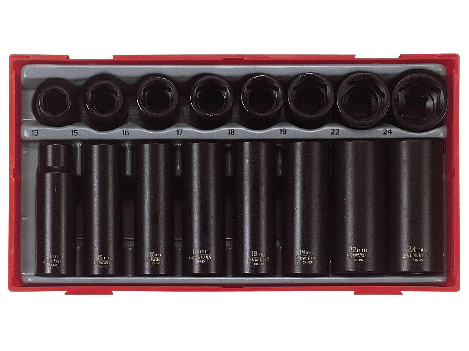 Teng Tools Sæt indeholdende 16 krafttoppe - korte og lange. ANSI standard.Leveres i indbygningsboks af plast med aftageligt låg. Kasserne passer i Teng Tools værktøjskasser og montørvogne.
