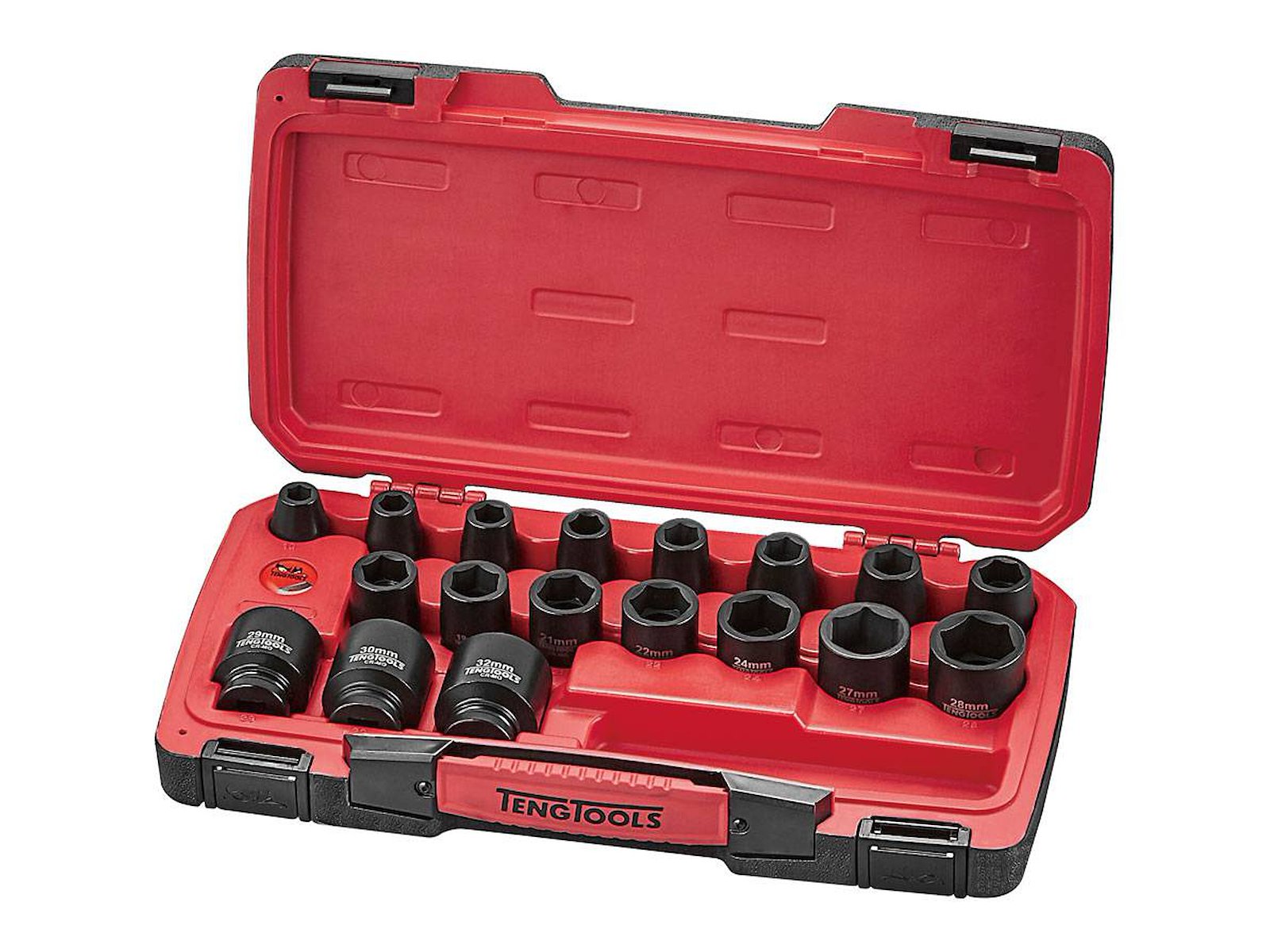 • DIN-standarddesign til brug med låsestift og -ring. Krommolybdæn-stål til brug med elværktøj. Sort fosfatfinish for nem identifikation som en slagtop. Udviklet og fremstillet iht. DIN3129. Monteringsåbning med ring og stift i hundelen til fastgørelse af toppen. Monteringsring og stift er inkluderet i sættet. Leveres i slidstærk Teng Tools-kuffert med tydeligt logo. Toppenes åbenlyse placering gør det nemt at se, hvor de enkelte størrelser hører til.