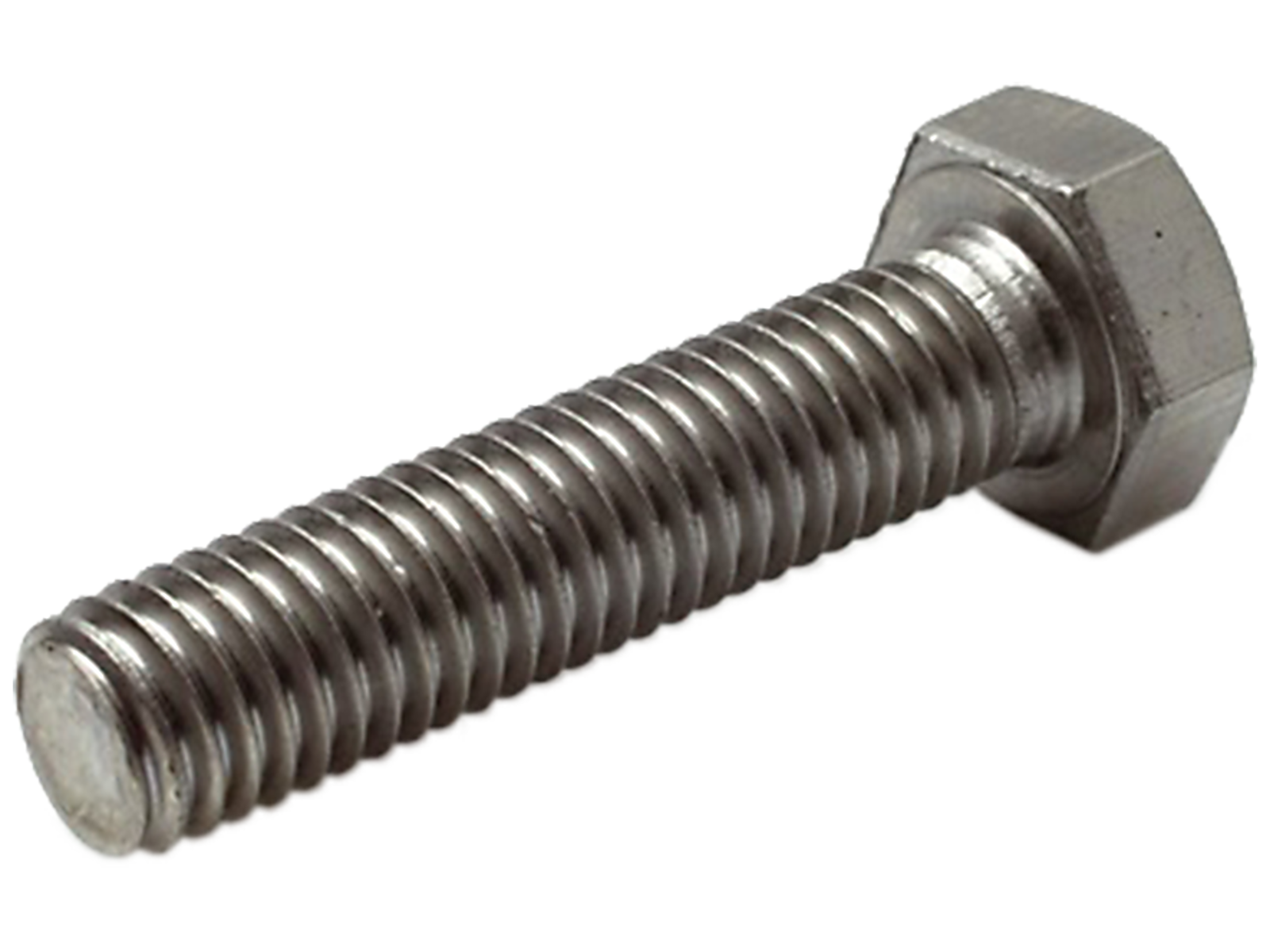 Skrue med sekskantet hoved. Tommegevind. Fås i flere dimensioner.