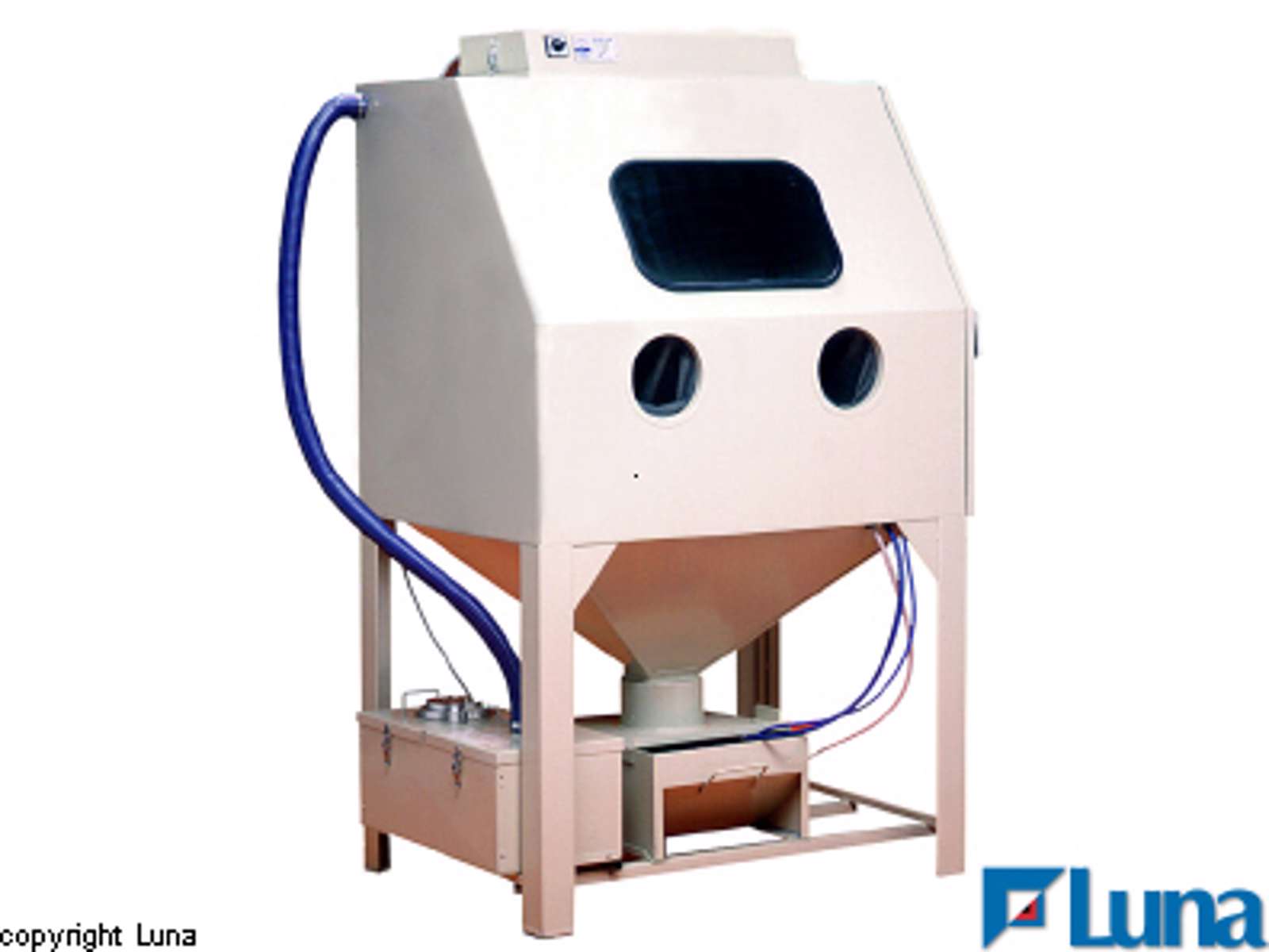 En blæsekabine komplet med støvudsugning indeholdende forfilter og mikrofilter samt et rengøringssystem til blæsemidlet. Kabinen har en stor observationsrude på 315x515 mm af 4 mm hærdet glas hvor operatøren har et særdeles godt udsyn over sin arbejdsopgave. Blæsepistolen er forsynet med en dyse af wolframkarbid med fodbetjening og sikkerhedsspærre samt en renblæsningspistol. Kabinen er med en stor sidelåge for nem i- og udtagning. Kabinens bund består af et arbejdsgitter hvor større partikler så som flager af rust og maling bliver liggende.