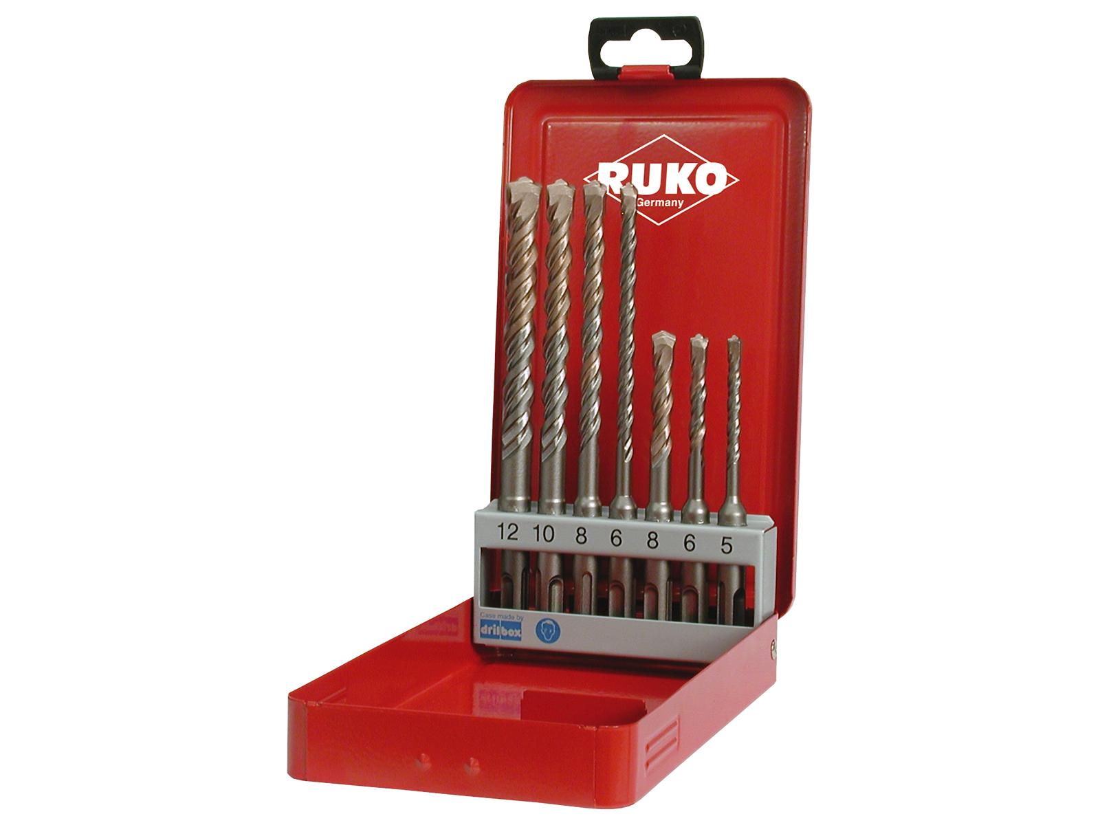 SDS-plus hammerborsæt i kunststofkassette. Indhold SDS-plus hammerbor 2-skærs. Ø5,0-6,0-8,0×110 mm og Ø6,0-8,0-10,0-12,0×160 mm. Meget høj stabilitet som gennem kerneforstærkning giver maximal kraftoverførelse fra borhammer til borspids. Stor slidstyrke på grund af speciel behandling af stålet. Spiral for optimal boremelstransport. Særdeles velegnet til befæstigelsesarbejde. Hammerfast hårdmetalplatte af speciallegering. Anvendes til granit, beton, klinker, murværk, fliser og marmor. Kan bruges i alle maskiner med SDS-plus holder eller 2-spor-holder som f.eks. Hilti TE 10-22.