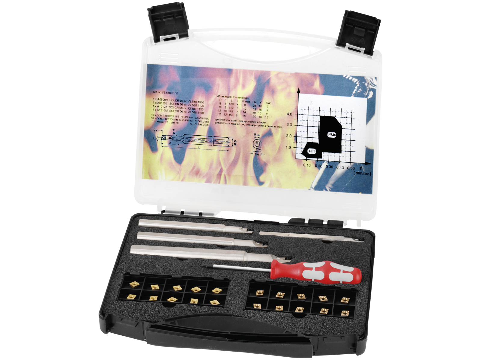 Indeholder 1×værktøjsholder ekstern, 1×værktøjsholder intern, adskille værktøj, 10×skær, 10×afskæringsindsatse, 1×Torx nøgle.