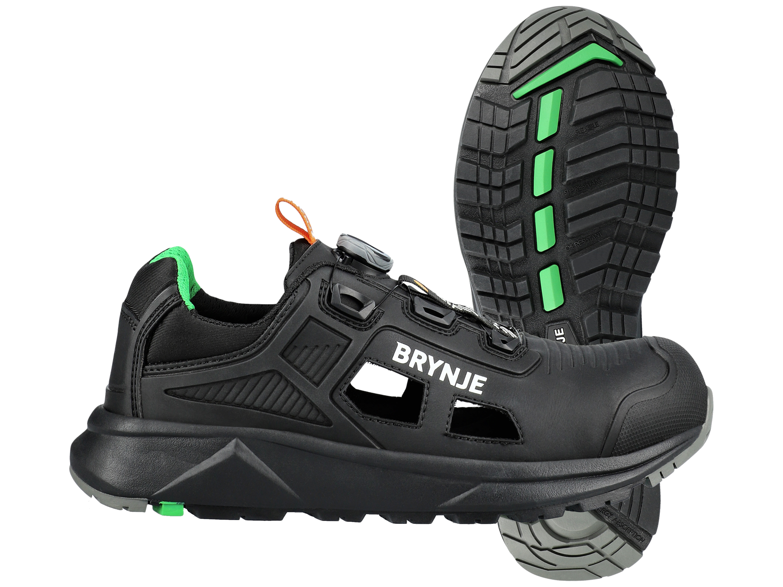 Let sikkerhedssandal certificeret efter de nye standarder i 2022. Overdelen består af vandafvisende mikrofiber og elementer i KPU. Kombinationen af mikrofiber og KPU-detaljerne sørger for ekstra styrke og stabilitet ved anklerne. Skoen spændes og løsnes med det innovative BOA® Fit System, som giver et perfekt fit. ProNosen af KPU, et slidstærkt materiale, er godkendt efter 2022-standarden og anbefales til knælende arbejde. Gummi-ydersålen er skridhæmmende, og kombineret med en blød, stødabsorberende mellemsål i EVA giver det en komfortabel og fleksibel sko. Sålen består også af en gelenk, der giver skoen stabilitet og mindsker vrid og belastninger på hælen. Sålmønstret er designet med store knopper og brede riller, så jord, sand, vand og mudder nemt kan løbe derfra og give godt fodfæste. Indlægssålen er stødabsorberende, blød, fleksibel og åndbar og består bl.a. af upcycled PU-skum, der er skumrester fra indlægssålsproduktion. ESD-godkendt.