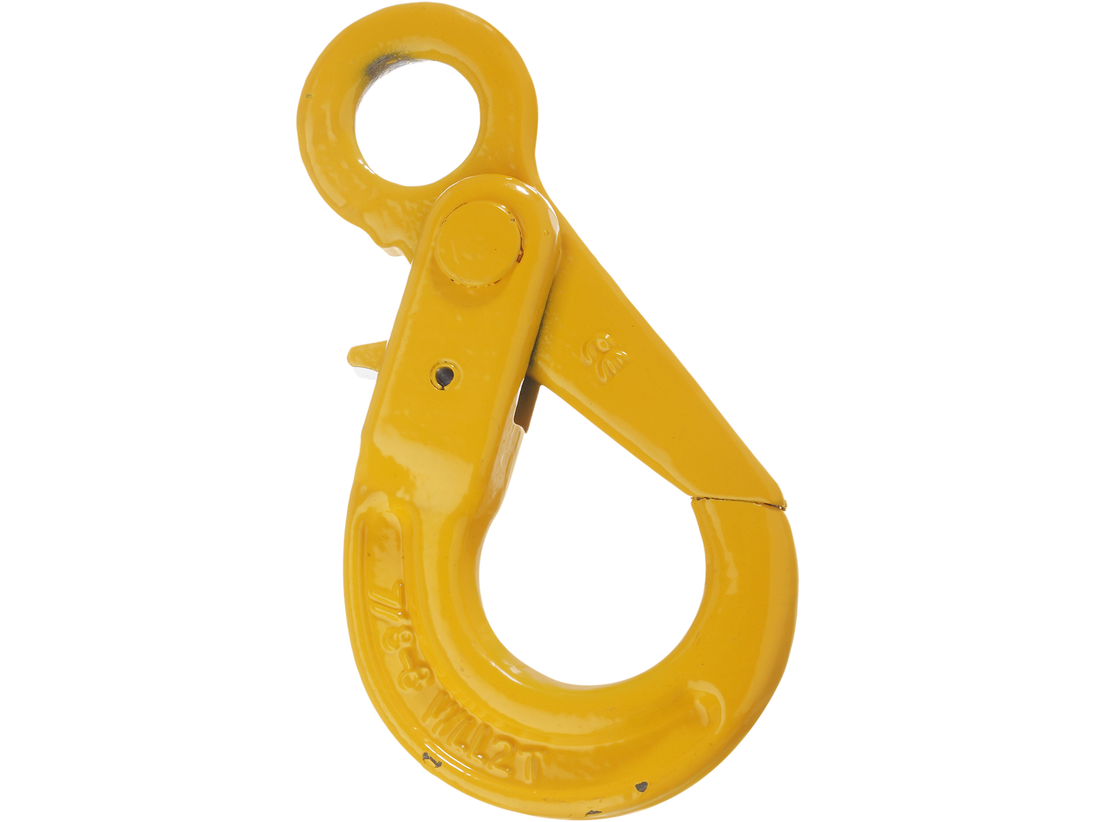 Gulmalet klasse 8 sikkerhedskrog med øje til fremstilling af kædesling. Åbner og lukker automatisk, kan ikke åbne under belastning. Fremstillet af sejhærdet stål med gulmalet overflade. Godkendelse EN 1677. Fås i flere varianter.