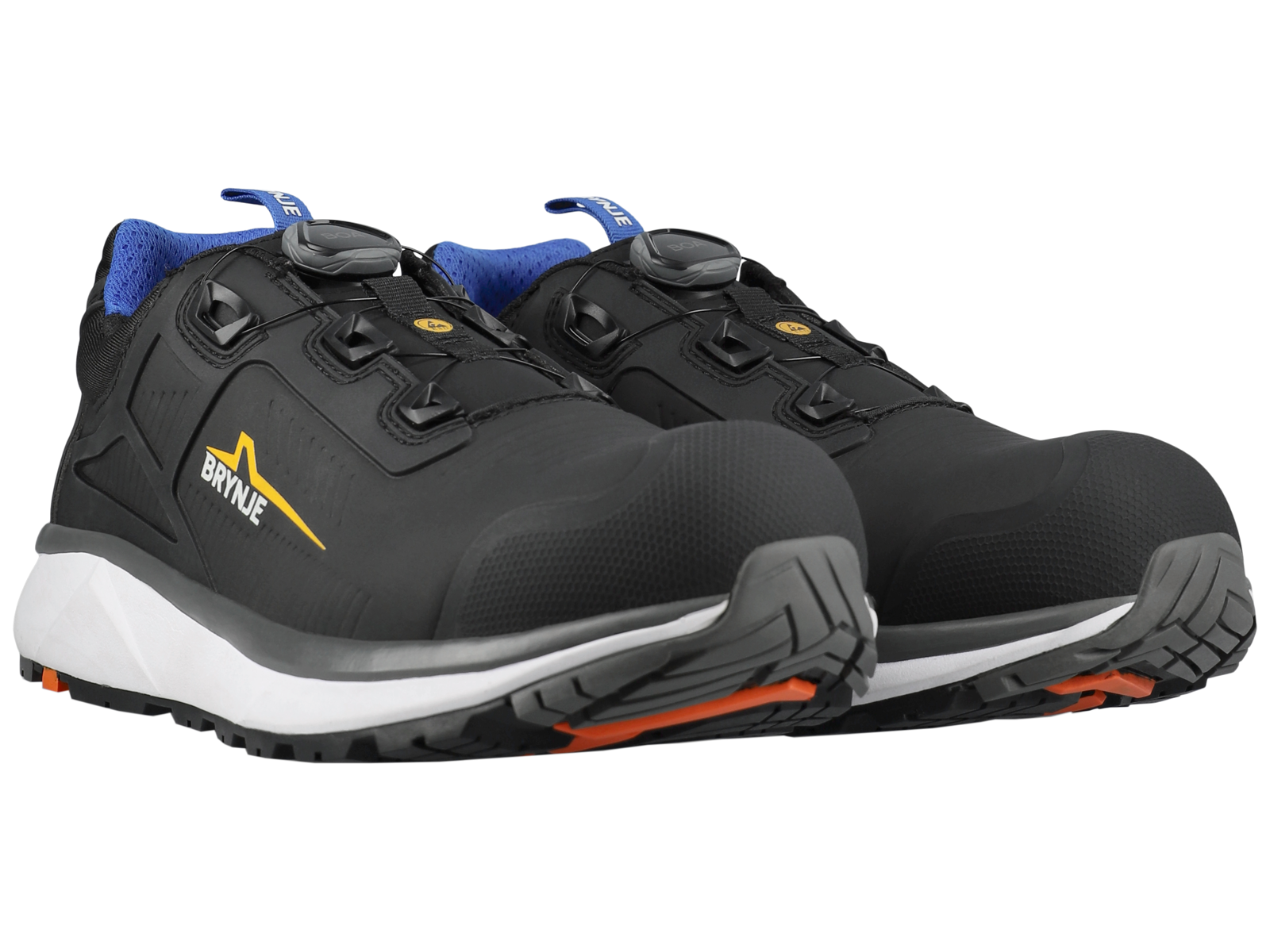 • Brynje Zap er en let sikkerhedssko certificeret efter de nye standarder i 2022. Overdelen består af vandafvisende mikrofiber og elementer i KPU. Kombinationen af mikrofiber og KPU-detaljerne sørger for ekstra styrke og stabilitet ved anklerne. Skoen spændes og løsnes med det innovative BOA® Fit System, som giver et perfekt fit. ProNosen af KPU, et slidstærkt materiale, er godkendt efter 2022-standarden og anbefales til knælende arbejde. Gummi-ydersålen er skridhæmmende, og kombineret med en blød, stødabsorberende mellemsål i EVA giver det en komfortabel og fleksibel sko. Sålen består også af en gelenk, der giver skoen stabilitet og mindsker vrid og belastninger på hælen. Sålmønstret er designet med store knopper og brede riller, så jord, sand, vand og mudder nemt kan løbe derfra og give godt fodfæste. Indlægssålen er stødabsorberende, blød, fleksibel og åndbar og består bl.a. af upcycled PU-skum, der er skumrester fra indlægssålsproduktion. ESD-godkendt og PVC-fri.