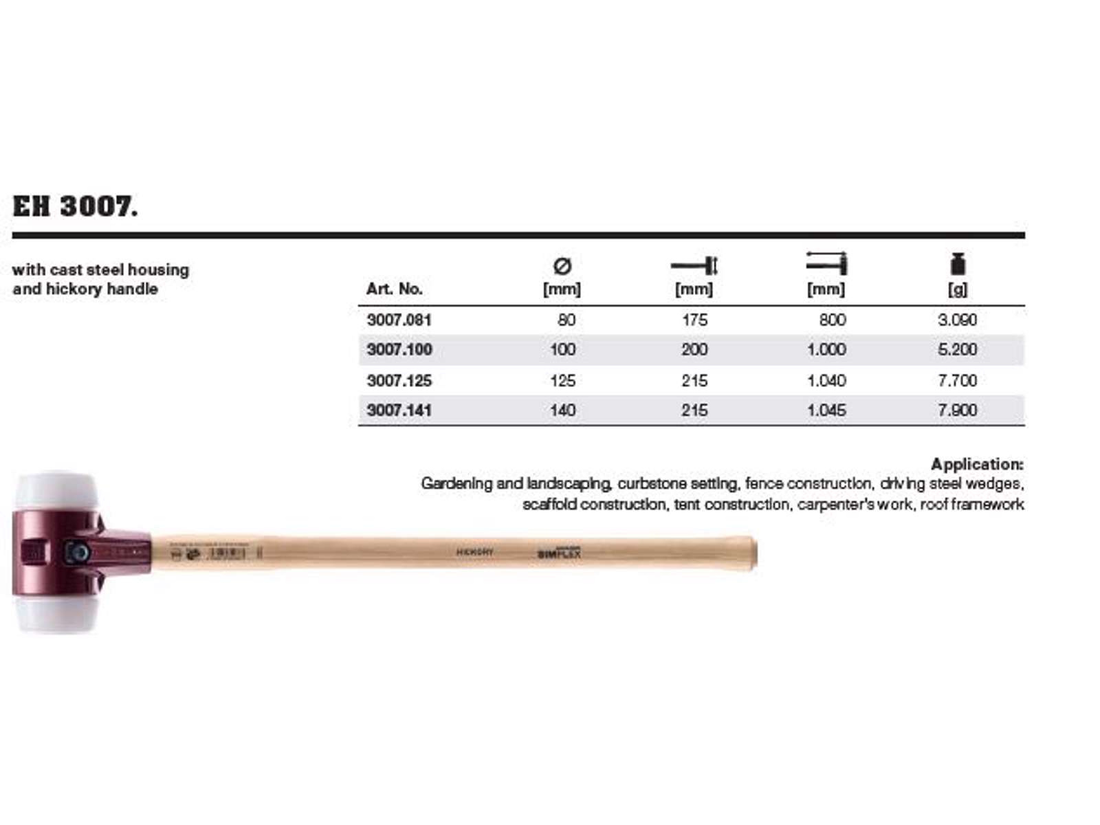 Simplex skåne-forhammer med baner i middelhård, hvid superplast, som er meget holdbar og slidstærk. Hus i støbejern og skaft i hickorytræ.