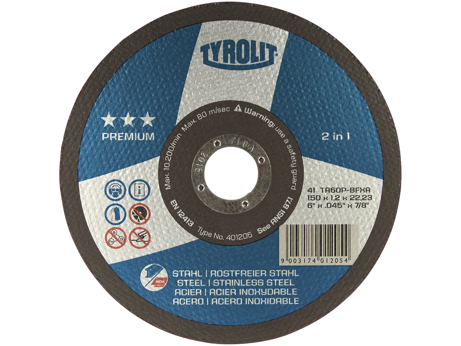 Premium skæreskive 2-i-1 med Deep Cut Protection til stål og rustfrit stål. Skvien giver brugeren mulighed for at opnå en maksimal indstiksdybde i emnet, uden at skiven ødelægges. Skiven er udstyret med en Deep Cut Protection metalbøsning, som forhindrer, at skivens krone går af og at boringen bryder løs pga. kontakt med skarpe kanter på emnet. Skiven er ideel til små tværsnit på plader, profiler og rør. Der kan også uden problemer skæres i stave og armeringsjern. Fås i flere størrelser samt i lige- eller forkrøppet form.