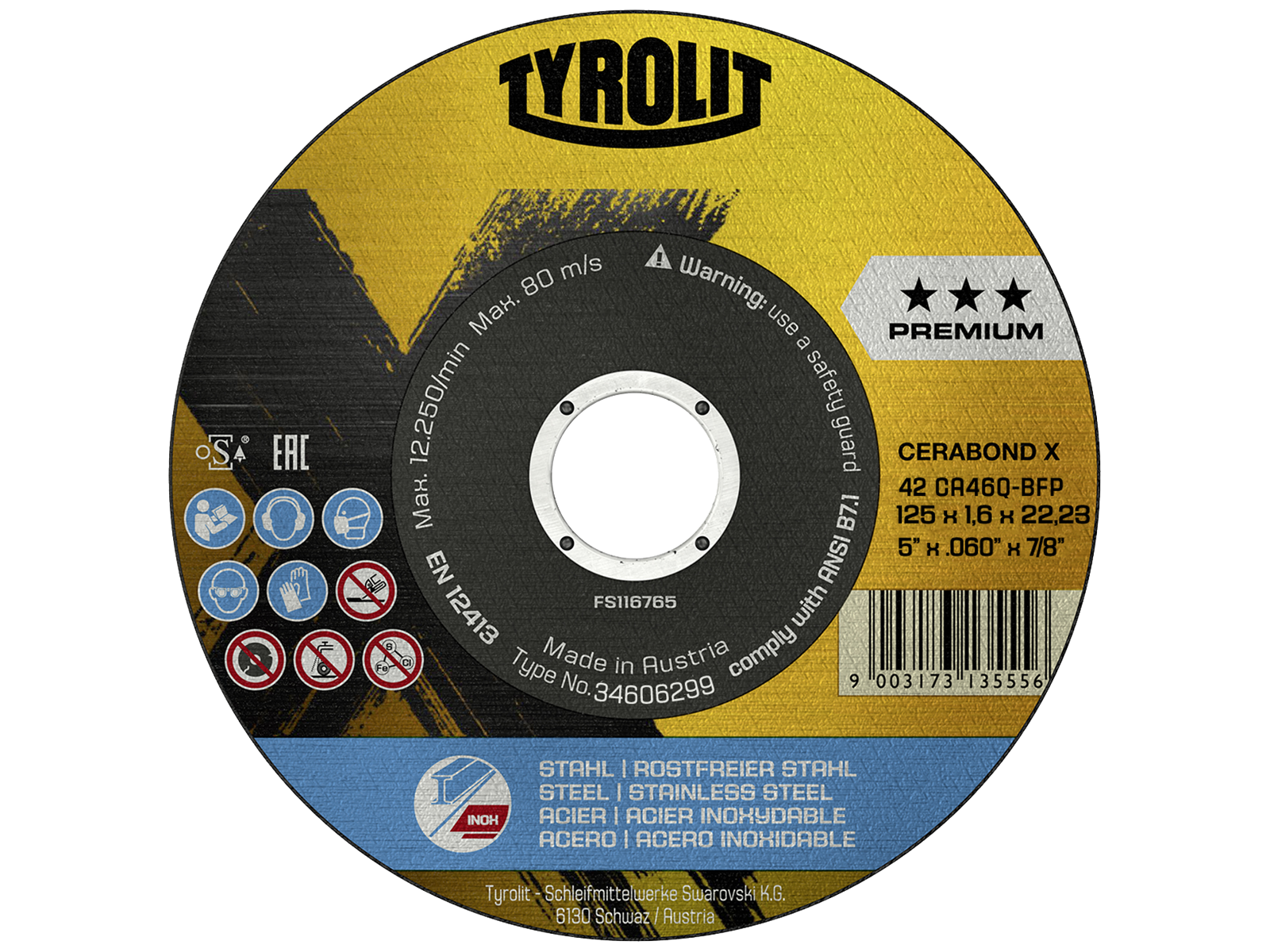 Cerabond X Premium 2i1 skæreskive med kombinationen af højkvalitets keramiske korn og et unikt bindingssystem, forhindrer for tidlig nedbrydning af slibekornene. Derfor garanterer Cerabond X skæreskiver, en uovertruffen levetid og deres aggressivitet er øget markant. Dette gør det til den bedste løsning, til skæring af stål og rustfrit stål, i hårde applikationer. Cerabond X-serien af skæreskiver er særligt velegnet til optimal bearbejdning af ekstremt hårde, krævende emner (fx hærdet stål) og store tværsnit. Sortimentet står for den længste levetid og korteste arbejdsprocesser med maksimal økonomisk effektivitet.