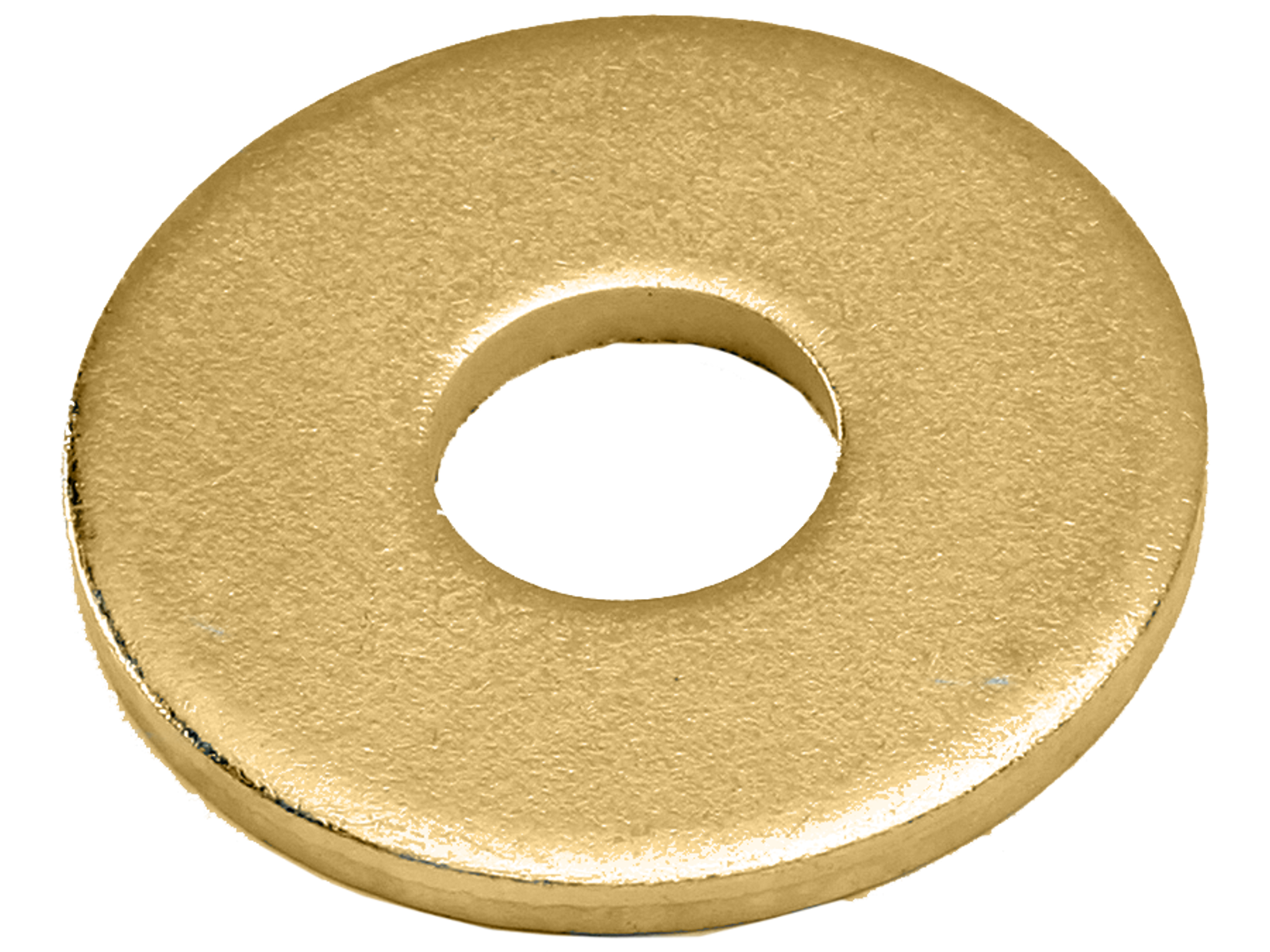 Messingskive til brug i skruesamlinger i messing. Skiven fordeler klemmekraften og forhindrer skader på underlaget fra roterende møtrikker eller skruehoveder. Den store yderdiameter gør den velegnet til bløde underlag som fx træ og ovale huller. Metrisk. Fås i flere dimensioner.