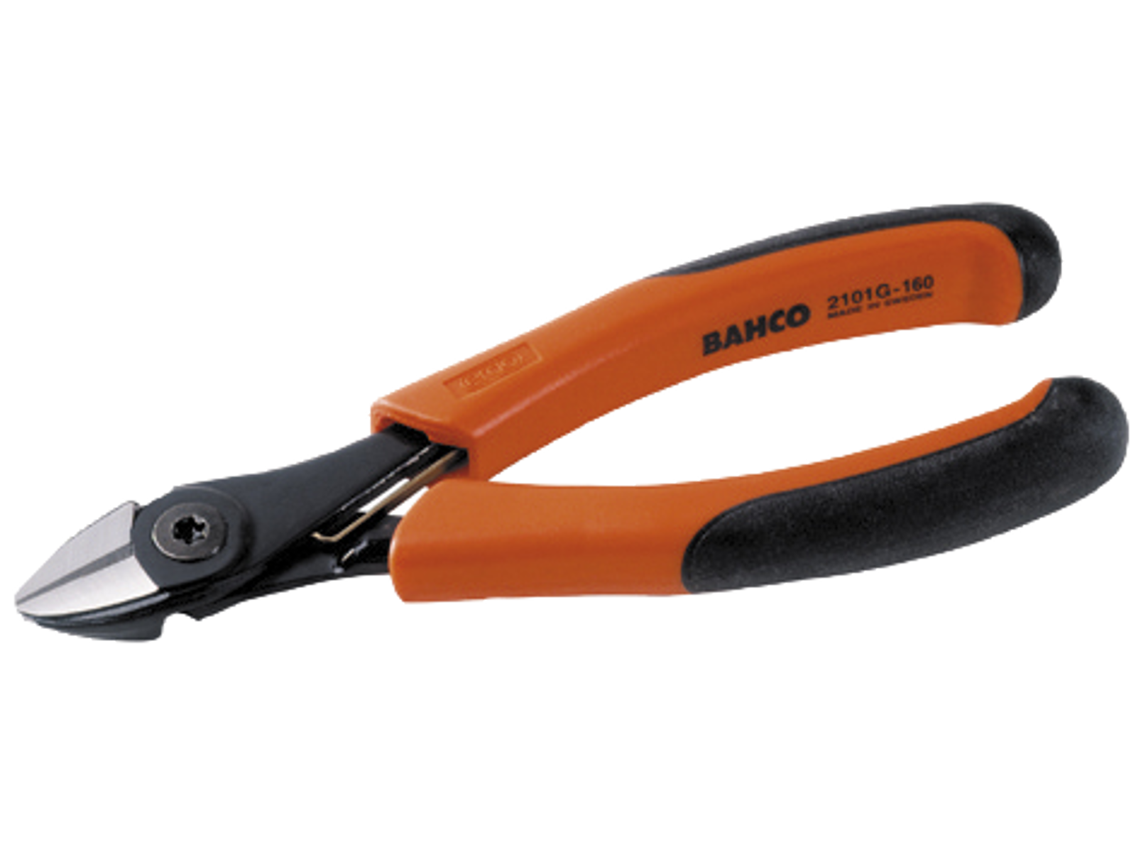 Udviklet i henhold til Bahcos ERGO program. ISO/DIN 5749. Finish: Sort finish, rustbeskyttet. Materiale: Højtlegeret stål, ERGO to-komponent håndtag med store grebsflader. Induktions hærdede skær. Progressive skær: Hårde materialer som f.eks. pianotråd og fjederstål klippes nær samleleddet, og bløde materialer som f.eks. kobbertråd og isolerede ledninger klippes med det yderste af skærene. Ledplacering sikrer stor udveksling med minimalt kraftforbrug, samt præcis balance mellem skærene. Afstanden mellem samleled og centrum af skærene er reduceret for at øge klippekapaciteten og mindske kraftforbruget. Smalle og afrundede kæber gør tangen velegnet hvor pladsen er trang. Forsynet med patenteret returfjeder med on/off funktion.
