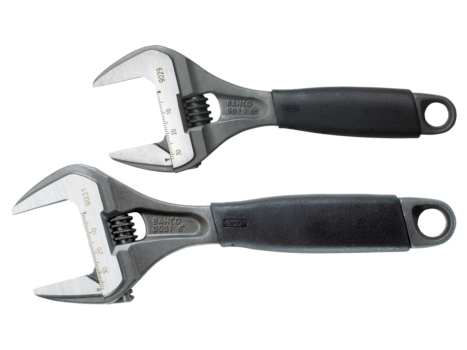 Ergo skiftenøglesæt dobbeltpakke med 9029 og 9031 skiftenøgler med ekstra stor kæbeåbning med et kortere håndtag end på standardnøgler giver bedre mulighed for arbejde, hvor pladsen er trang. Kæben falder ikke ud – selv ikke når skiftenøglen er maksimalt åben. Hovedet har et slankt design, så der er bedre adgang til trange områder. Laserskala i mm til forudindstilling og nøjagtig måling. Skydrol- og oliemodstandsdygtigt Ergo gummigreb. Højtlegeret stål smedet i ét stykke. Fosfateret udførelse, præcisionshærdet og rustbeskyttet. Venstregående skrue. Standarder: ISO 6787, DIN 3117, ASME B107.8-2003 og BS 6333. Maksimal komfort med minimal indsats takket være det ergonomiske design. Det ergonomisk designede termoplastiske håndtag fordeler trykket jævnt i hånden og reducerer risikoen for arbejdsrelaterede ulykker. Håndtaget føles aldrig for varmt eller for koldt og kan modstå olier og fedt. Den bløde overflade med høj friktion reducerer risikoen for, at den glider ud af hånden. De parallelle kæber, som har en vinkel på 15°, giver et fast greb og god adgang hvor pladsen er trang. Højere kapacitet og adgang hvor pladsen er trang, takket være den store nøglevidde og det korte håndtag. Fremragende styrke takket være præcisionshærdning og legeret stål med høj ydeevne.