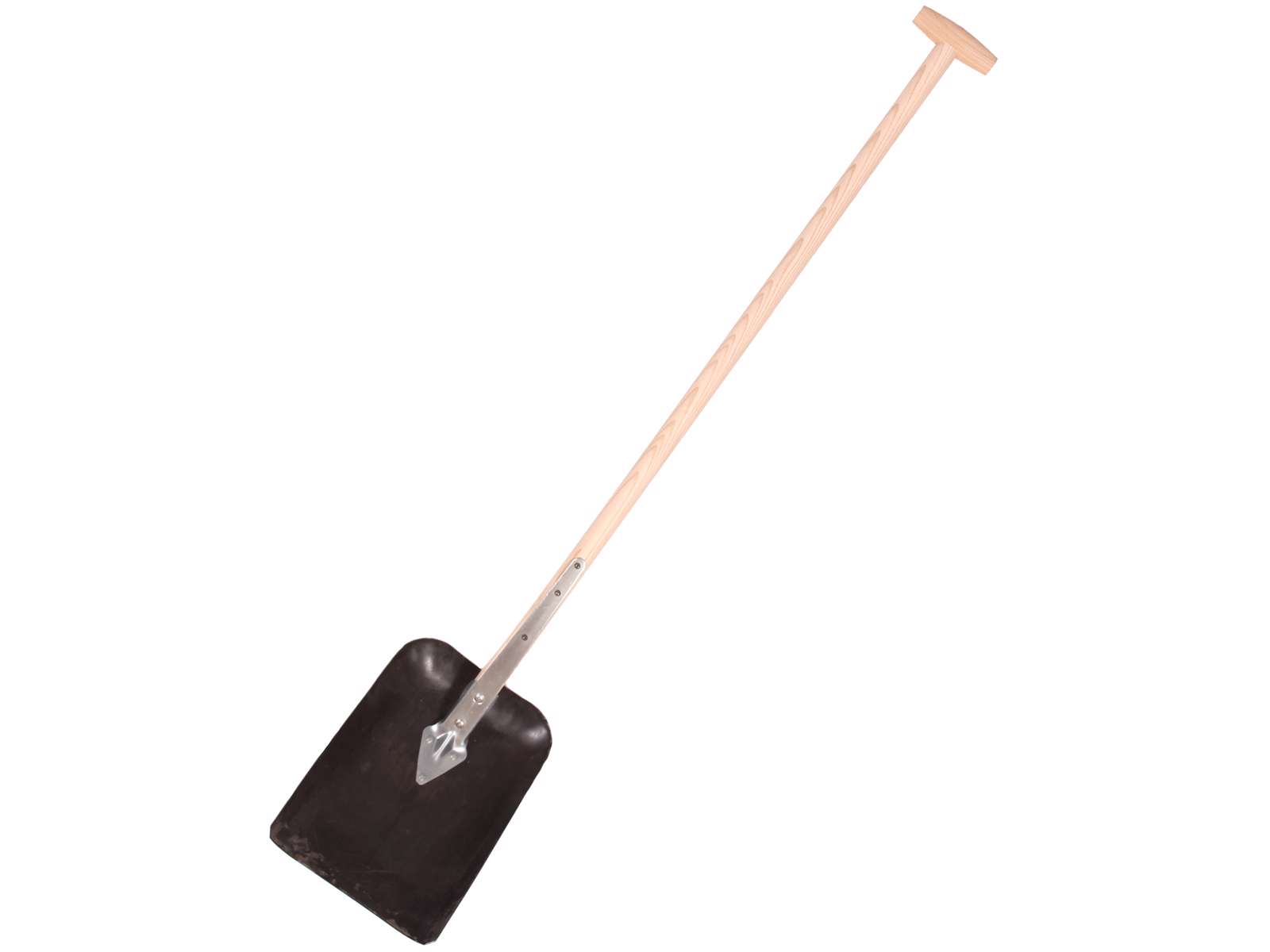 Letvægt graveskovl med pænt frasorteret asketræsskaft med krykke. Hærdet og lakeret skovlblad (320×230 mm). Fås med og uden tråd.