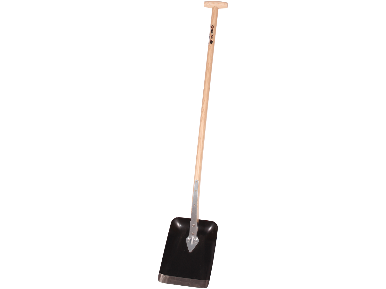 Graveskovl med hærdet og pulverlakeret skovlblad (320×230 mm). Graveskovlen er ideel til at flytte jord, sand, og grus. Model med asketræsskaft og krykke.
