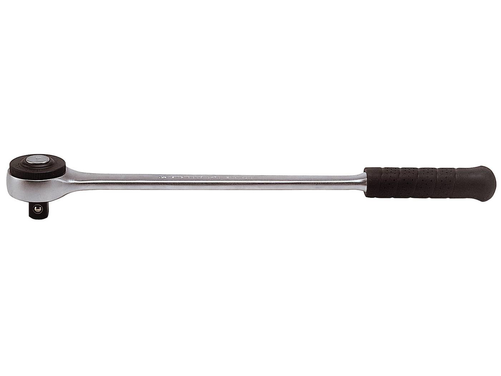 3/4" skraldenøgle med 72 tænder med drejegreb til omstilling mellem højre- og venstredrejning samt knap til låsning, løsning/skift af toppe.