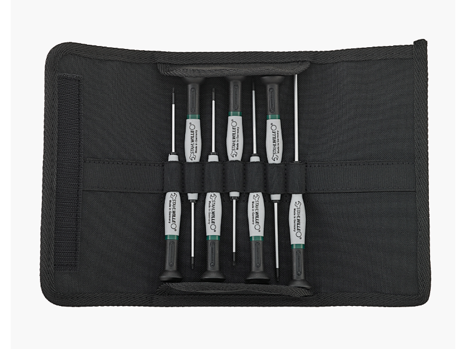 Elektronikskruetrækkersæt med 7 skruetrækkere til forsænkede Torx-skruer. Drejelig cap med ergonomisk fordybning. Smalt, praktisk, hurtigtdrejende håndtag. Indeholder model 4754 i str. T4, T5, T6, T7, T8, T9 og T10.