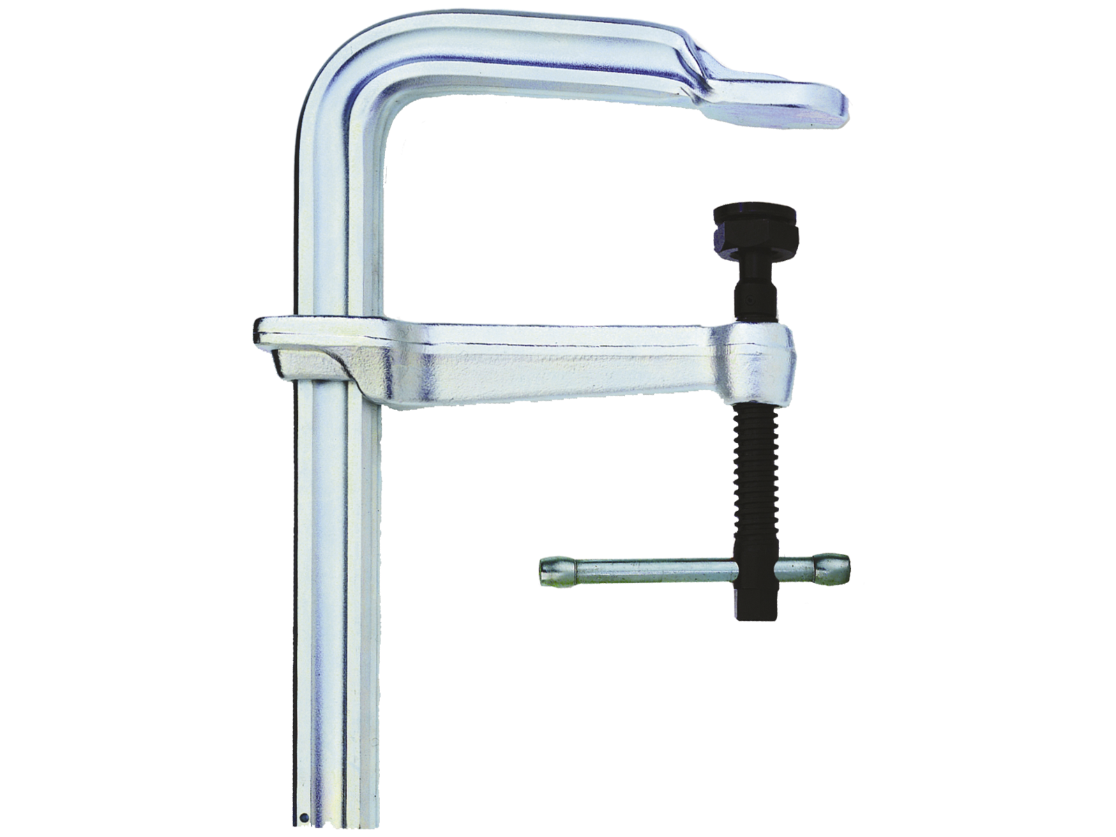 Kraftig helsmedet stålskruetvinge med lang levetid pga. varmebestandig specialtryksko med sinterstålindlæg, som kan vippes op til 35°. Model med sekskant 19 mm på spindelenden. Skinnestørrelse 40×20 mm. Fås i flere dimensioner.