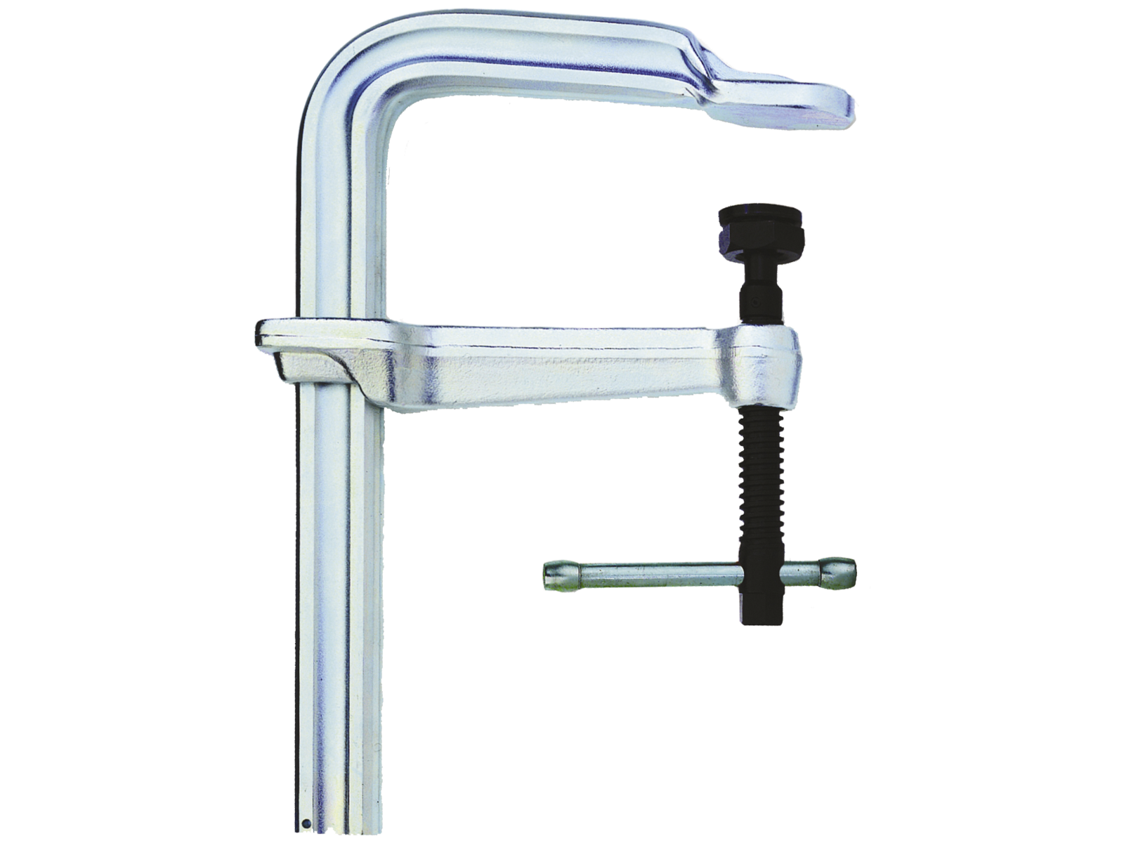 Kraftig helsmedet stålskruetvinge med lang levetid pga. varmebestandig specialtryksko med sinterstålindlæg, som kan vippes op til 35°. Model med sekskant 19 mm på spindelenden. Skinnestørrelse 40×20 mm. Fås i flere dimensioner.