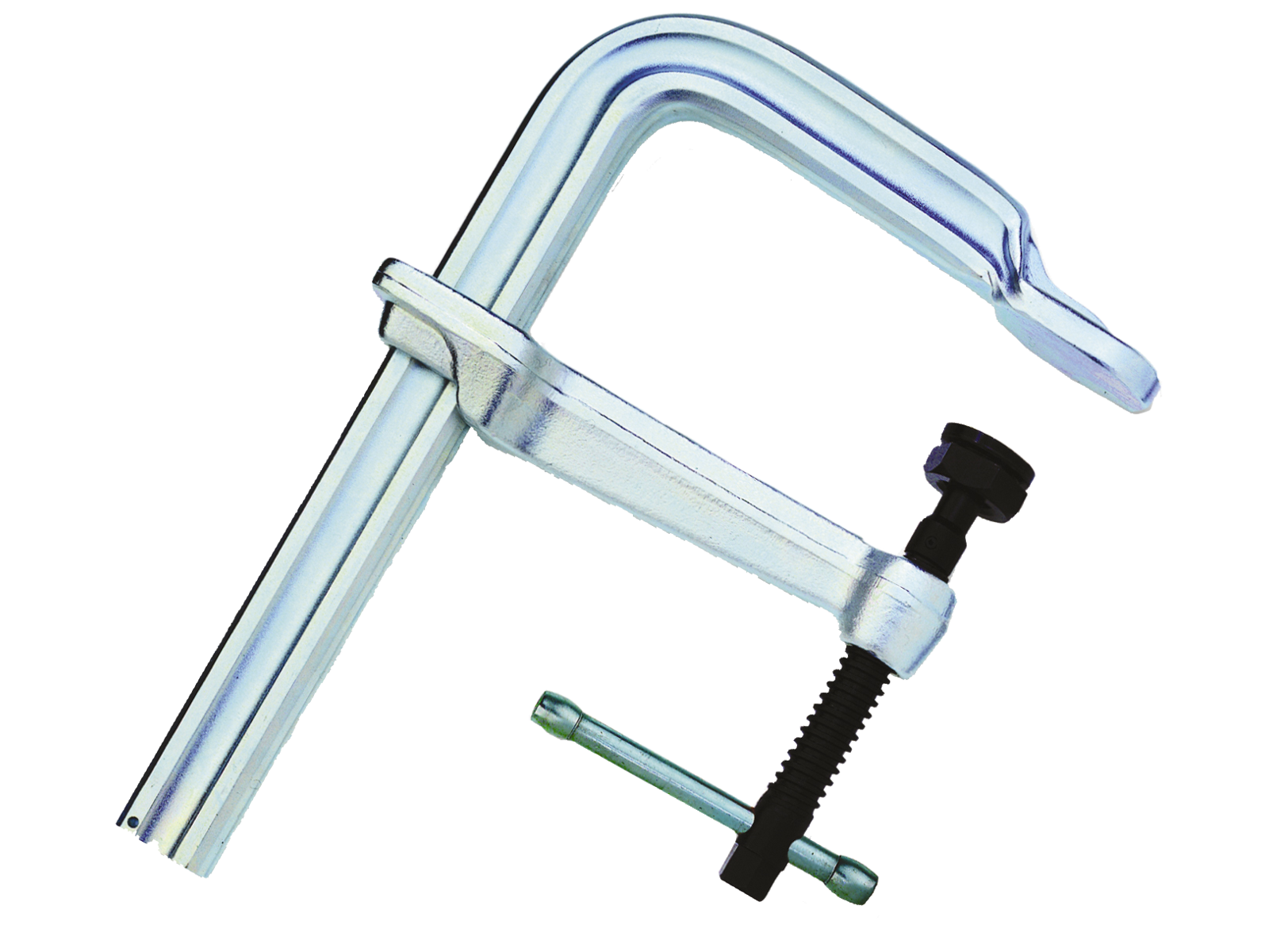 Kraftig helsmedet stålskruetvinge med lang levetid pga. varmebestandig specialtryksko med sinterstålindlæg, som kan vippes op til 35°. Model med sekskant 19 mm på spindelenden. Skinnestørrelse 40×20 mm. Fås i flere dimensioner.