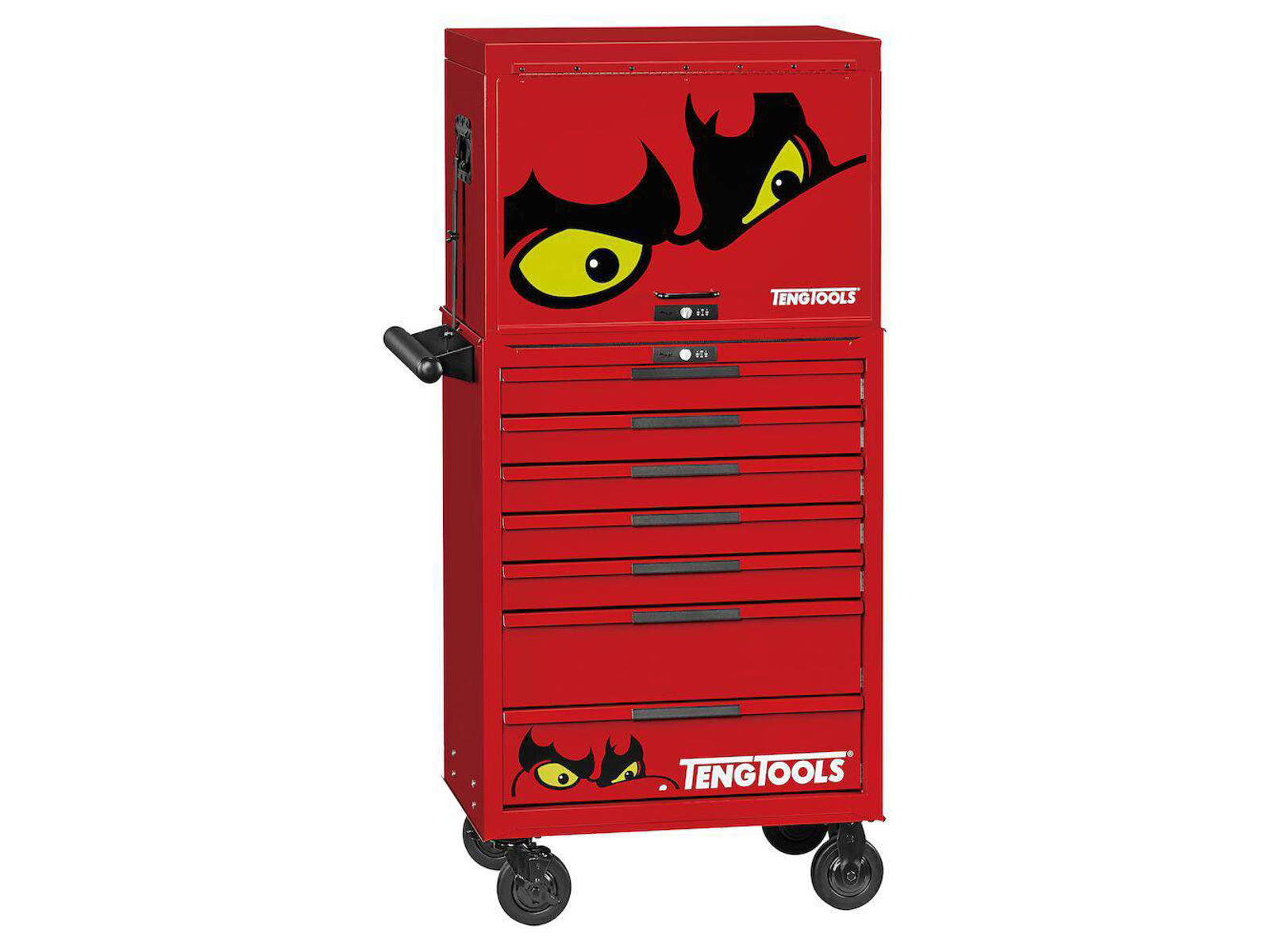 Et 26'' værktøjssæt med 528 dele, der er skræddersyet til minedrift og tung industri. Stablet opbevaring med 12 skuffer med 3-trins kuglelejeskinner og 30 kilos kapacitet pr. skuffe. Kraftig stålkonstruktion, der er forstærket via en 5-trins fosfatfri rustbeskyttelsesproces og en pulverlakeret finish. Udstyret med 5'' kuglehjul og komfortgreb for nem manøvreevne. Indeholder et bredt udvalg af værktøj, der er sikret med 3-cifrede kombinationslåse. TengTools Tool Control-system i EVA-skum med høj densitet.