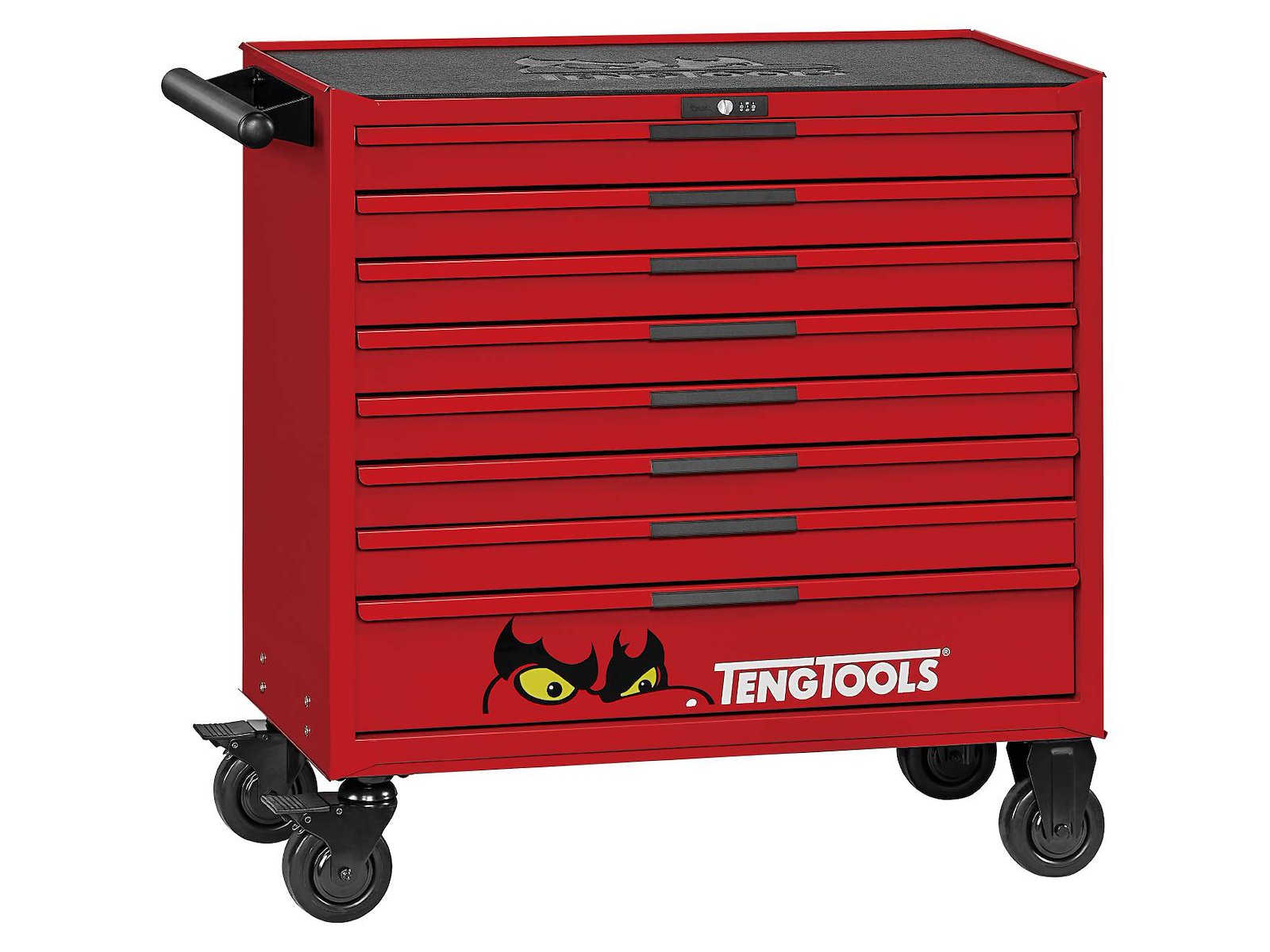 37'' værktøjssæt og arbejdsbænk med 525 dele, der er velegnet til tung industri, lastbiler og entreprenørmaskiner. Værktøjsopbevaring med otte skuffer, der kan trækkes helt ud og som alle har skinner med kugleleje og en belastningskapacitet op til 40 kg. Særdeles slidstærk, pulverlakeret stålkonstruktion med fosfatfri rustbeskyttelse (5-trinsbehandling). Udstyret med 5"-hjul. Alt værktøj ligger i præcisionsudskåret EVA-skum, hvilket gør det nemmere at holde orden og se, om der mangler noget værktøj. Kombinationslås med tre cifre. Skuffe 1 Toppe og skraldegreb Skuffe 2 Topsæt og greb Skuffe 3 Toppe og skraldegreb med 3/4” fæste Skuffe 4 Ringgaffelnøgler (flere i visse størrelser), Skuffe 5 Skruetrækkere Skuffe 6 Tænger Skuffe 7 Slagværktøj Skuffe 8 Krafttoppe med 1/2” fæste.