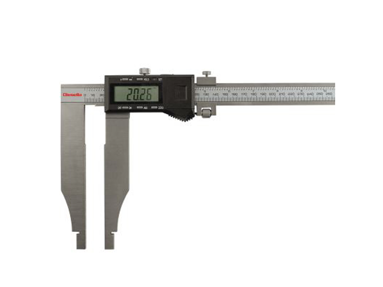 Digital-værkstedsskydelære med mange funktioner. Skydelæren har ABS-indstilling, nulstilling, omstilling mellem millimeter og tommer, HOLD- og SET-funktion samt dataudgang. Model med afrundede måleflader for indvendig måling. 0,01 mm aflæsning og ±0,08 mm nøjagtighed. 150 mm kæbe. Udført i rustfri stål. Leveres inkl. 1×CR2032 batteri i robust plastkasse til opbevaring. Fås i to størrelser.