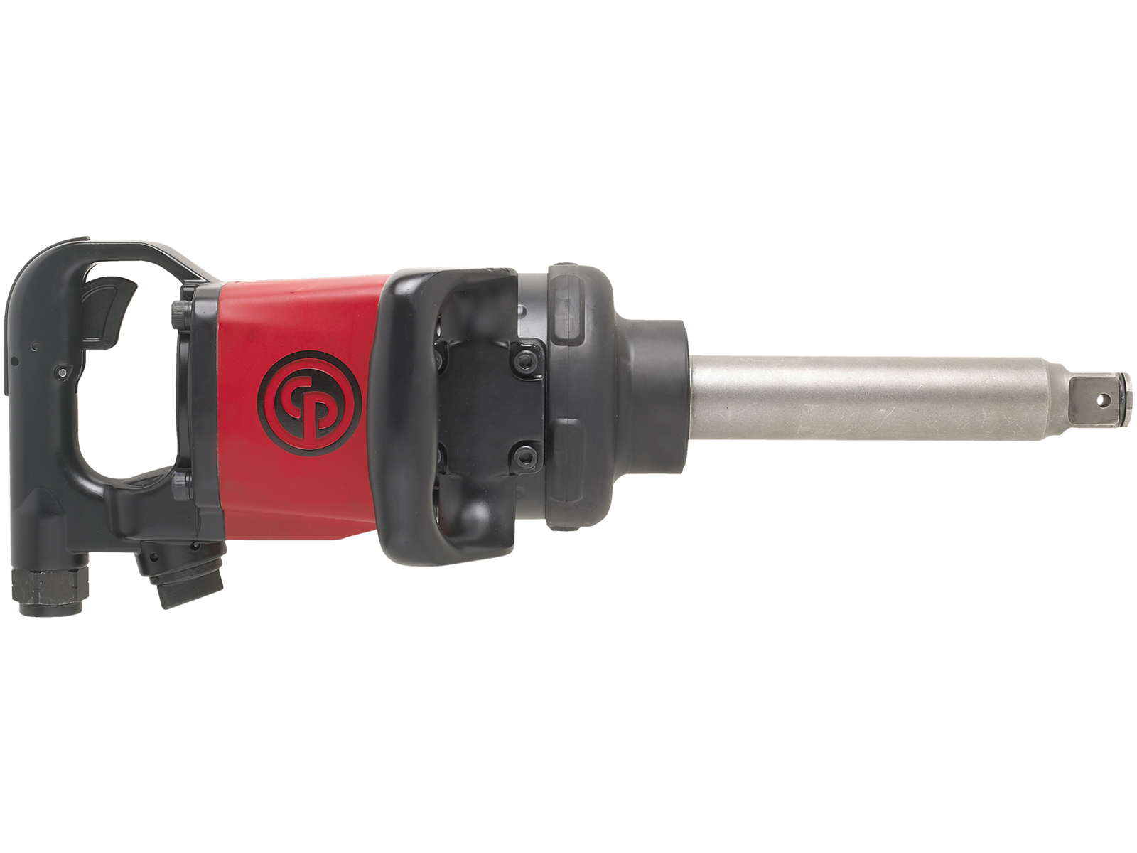 1 "skruenøgle med 6" forlænget ambolt. 2.600 Nm drejningsmoment. Ergonomisk sidehåndtag. Regulator med integreret frem/bagud med 3-positions effektindstillinger i begge retninger. 5.200 omdr./min. 1/2" tilslutning. Min. slangedimension 1/2".