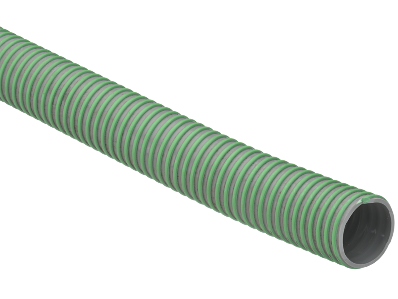 • Plastslange med PVC-spiral Greenflex. Ekstruderet grå PVC slange med indstøbt grøn chokbestandig PVC-spiral. Er yderst fleksibel, også ved lave temperaturer. Velegnet til spilde-vand, gylle og vand. Temperatur: -25°C til +60°C. Pris pr. meter. Fås i flere dimensioner.