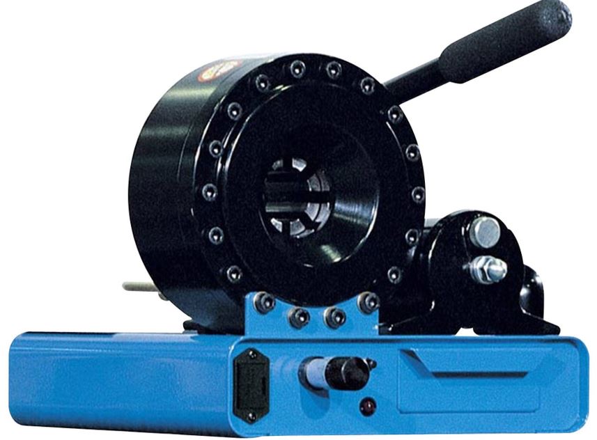 En hydraulisk slangepresse bruges til at samle hydraulikslanger ved at presse koblinger og fittings på slangerne. Denne proces sikrer, at slangen får den nødvendige styrke og tæthed, så den kan modstå høje tryk uden at lække. Hydrauliske slangepresser anvendes typisk i produktionen af hydraulikslanger, som bruges til at transportere væsker eller gas under højt tryk i industrielle maskiner, landbrugsudstyr og transportkøretøjer. Ved korrekt montering sikrer en hydraulisk slangepresse lang levetid og pålidelighed i systemet.